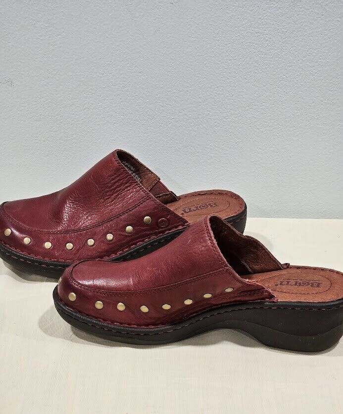 BORN Majesty Women's RED Leather Clogs Rivets Studs 7W. Ships from a smoke free home! Please see all photos for exact item condition. Thank you for checking out my store! All items are shipped within 1 or 2 business days. Make a bundle to save on shipping cost.