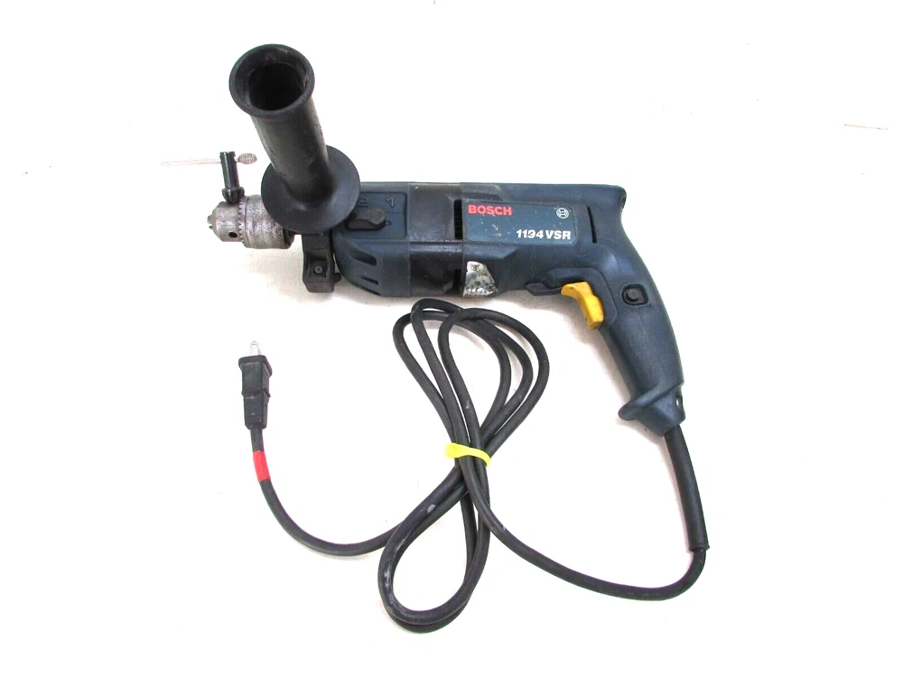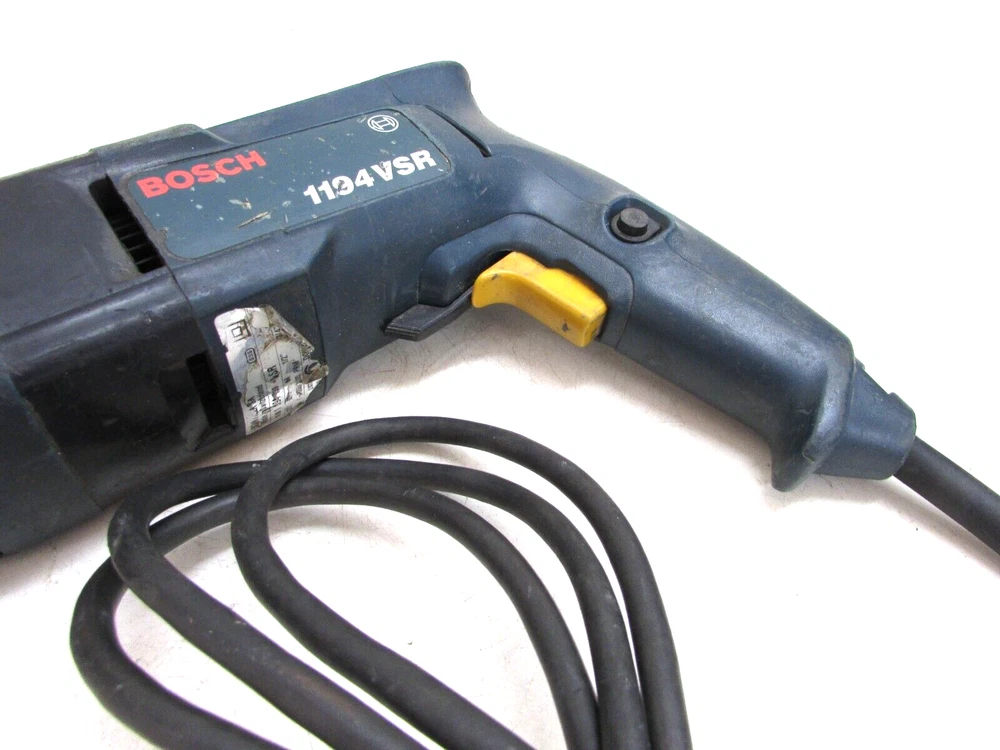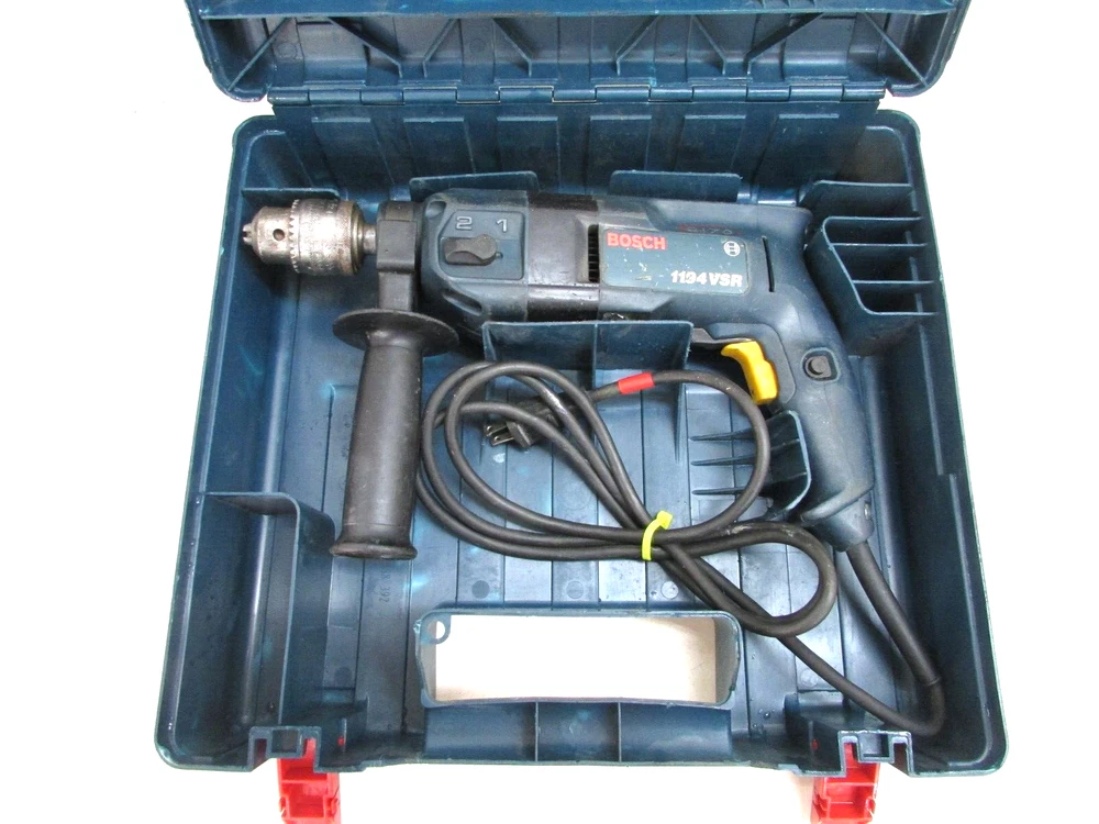 THIS IS A PREVIOUSLY USED ITEM BOSCH TOOLS No. 1194 VSR HAMMER DRILL WITH CHUCK KEY AND PLASTIC STORAGE CASE 120V 6 A 0-1000/3000 RPM COMES JUST AS PICTURED HAS PREVIOUS OWNERS ENGRAVINGS AND MARKINGS GOOD USABLE CONDITION! 21-E