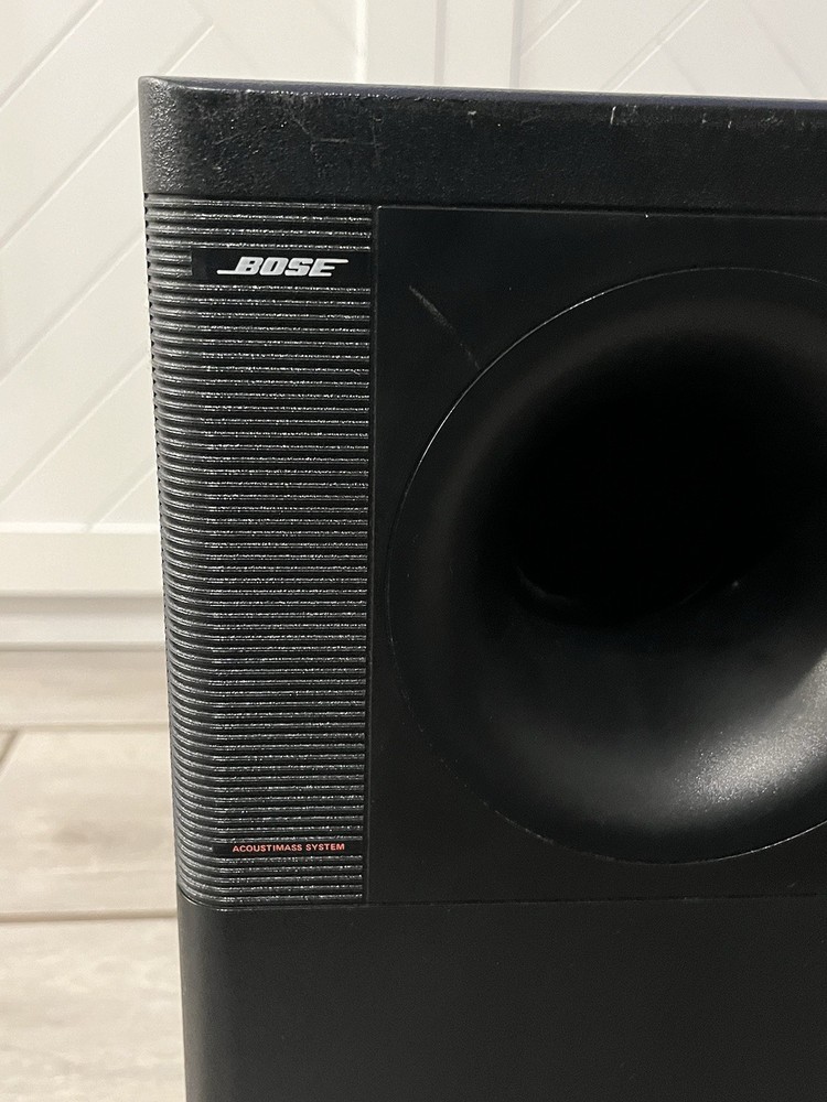 This Bose Acoustimass 15 subwoofer delivers deep, powerful bass that really enhances movie nights and music. The speaker cover is missing, but the sound quality is still impressive—great for those who want immersive audio without breaking the bank. Selling as-is, but totally worth it if you're looking for a solid bass boost!