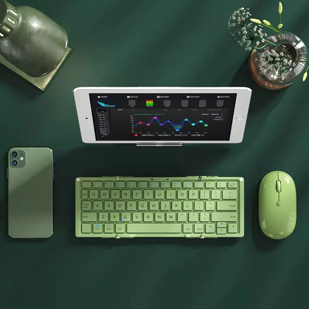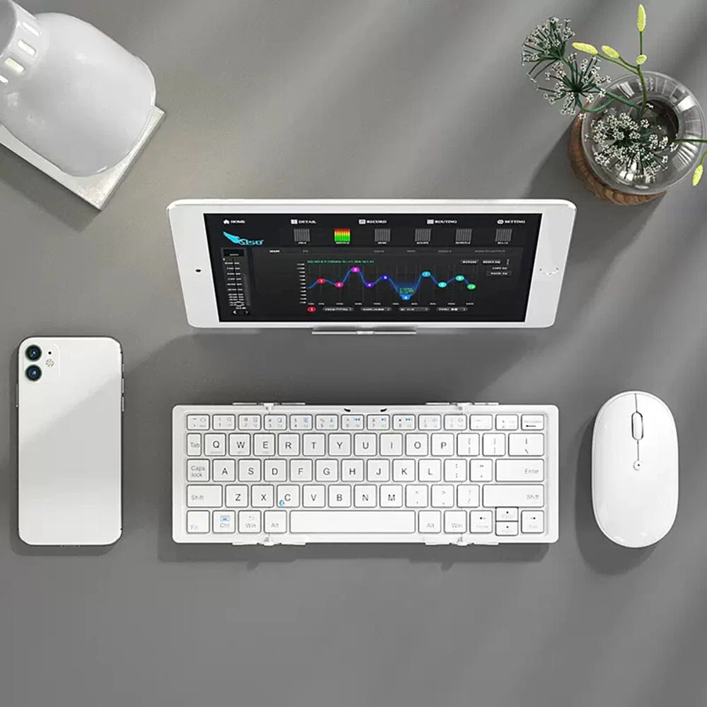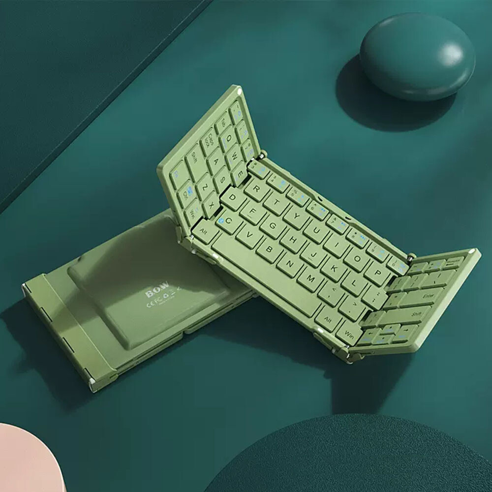 BOW HB066S Mini Folding Bluetooth Keyboard Suitable for Android, Windows, PC, Tablet, Phone Description: Interface standard: Bluetooth 3.0 Charging duration:<2 hours Lithium battery capacity:>210mA Effective operating range: within 10m Adaptive mode: GFSK Sustainable working time: 8 days Working voltage: 3.0~4.2V Working current:<2.5mA Standby current:<0.3mA Sleep current:<40UA Key lifespan: 3 million clicks