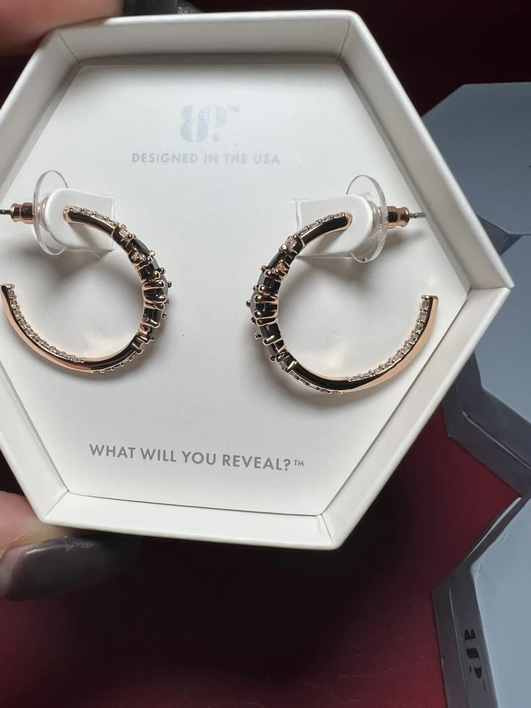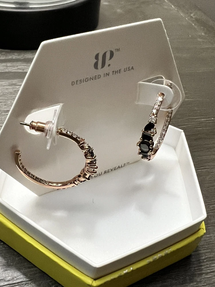 Elevate your style with these stunning hoop earrings from BP. Crafted with a rose gold-plated metal, these earrings feature a black onyx cubic zirconia stone that adds a touch of sophistication to any outfit. The hoops are perfect for a day or night look and can be dressed up or down to suit your mood. These earrings are a must-have for any jewelry collection and are sure to become a staple in your wardrobe.