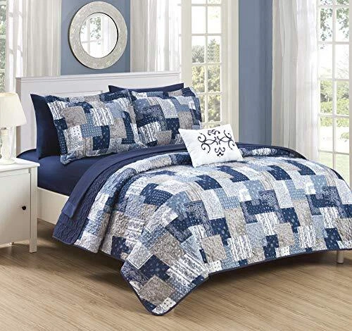 Return Policy Fast Delivery Trusted seller BQS11374-AN Eliana 4 Piece Reversible Coverlet Set Embossed Patchwork Bohemian Paisley Print Quilted Design Bedding-Decorative Pillow Shams Included, King, Blue Product Description Microfiber LUXURIOUS SUPER SOFT PLUSH MICROFIBER – The quilt is made with premium quality cotton-feel brushed microfiber for an amazing night’s sleep LIGHTWEIGHT HYPOALLERGENIC FILLING – This quilt is filled with synthetic down alternative filling, ideal for those with allergies STYLE AND COMFORT – Our fashion forward quilt sets blend style and function to give you the best looking and most comfortable bedding CONTEMPORARY DESIGN – Fashion forward Bohemian inspired paisley print patchwork design on the face with an embossed solid color backing – Design and color coordinated pillow shams and an embroidered decorative pillow complete the look MADE WITH YOU IN MIND – Every set is made with strict quality control and comes with a king size reversible quilt, design coordinated reversible pillow shams and an embroidered decorative pillow Shipping Returns Payment Shipping Shipping is FREE to all addresses other than APO/PO boxes in the lower 48 states. All our stock ships from US-based warehouses. Shipped via USPS or UPS (depending on location and package weight) Unless stated otherwise, all orders will ship within 24-72 hours of your payment being processed. Check our feedback to see the great reviews of FAST shipping we offer. Returns Seller does not accept returns Payment We currently accept payment via eBay managed payments only. Once payment is cleared, we will dispatch your shipment within 1-3 business days. Please refer to the "Shipping" tab for more information regarding shipping speed to your destination.