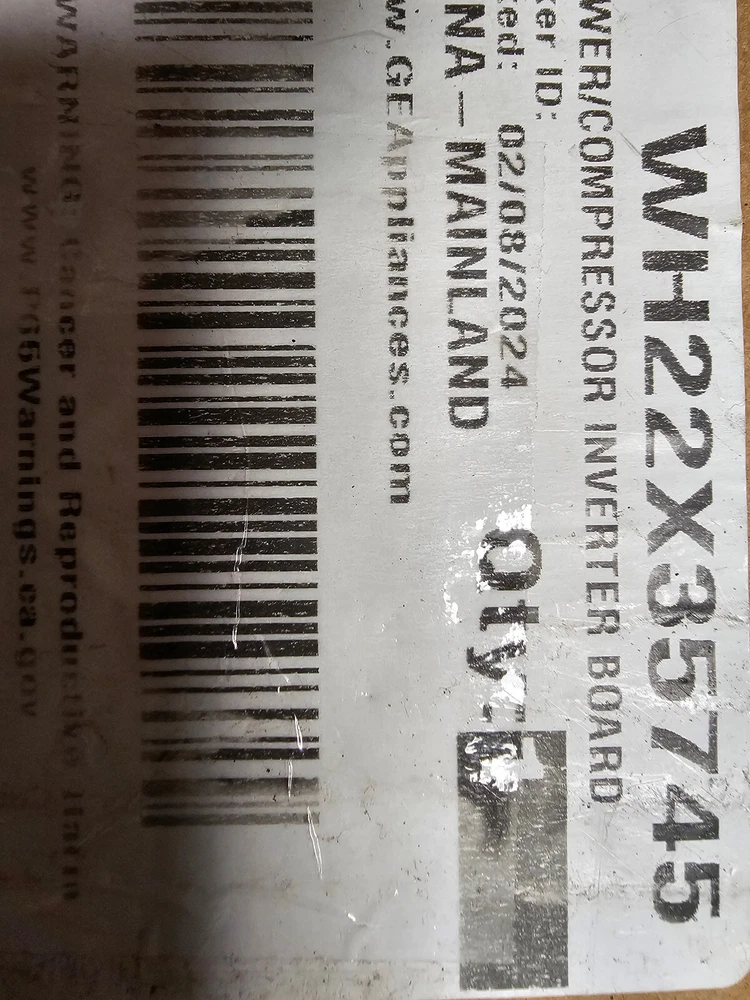BRAND NEW!! GE Refrigerator Inverter Board WH22X35745!! The box was only opened to take pictures and ensure lack of physical damage. Receive SAME DAY shipping when your order is placed before 4pm EST!! Do not hesitate to contact us to verify the part's compatibility with your model.