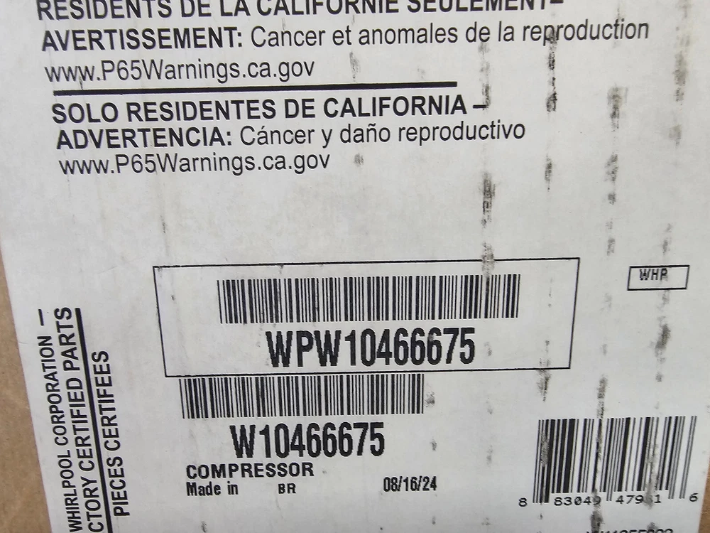 BRAND NEW!! OEM WHIRLPOOL REFRIGERATOR COMPRESSOR WPW10466675
