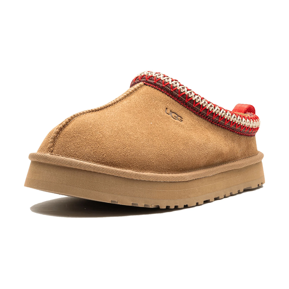 The BRAND NEW UGG Tazz Slipper in Chestnut is a cozy and stylish slip-on shoe perfect for casual occasions. Featuring a low heel height and rubber outsole, these slippers are designed for comfort and warmth during the winter, fall, and spring seasons. The suede upper material with sheepskin lining and wool insole provides a soft and luxurious feel, while the signature UGG logo adds a touch of accent. Made with high-quality materials and craftsmanship, these UGG Classic slippers are a great addition to any unisex kids' shoe collection.