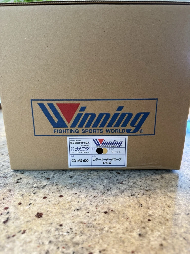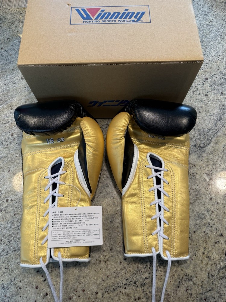 BRAND NEW Winning CO-MS-600 Sparring Gloves 16 oz Black/Gold Lace-Up Boxing