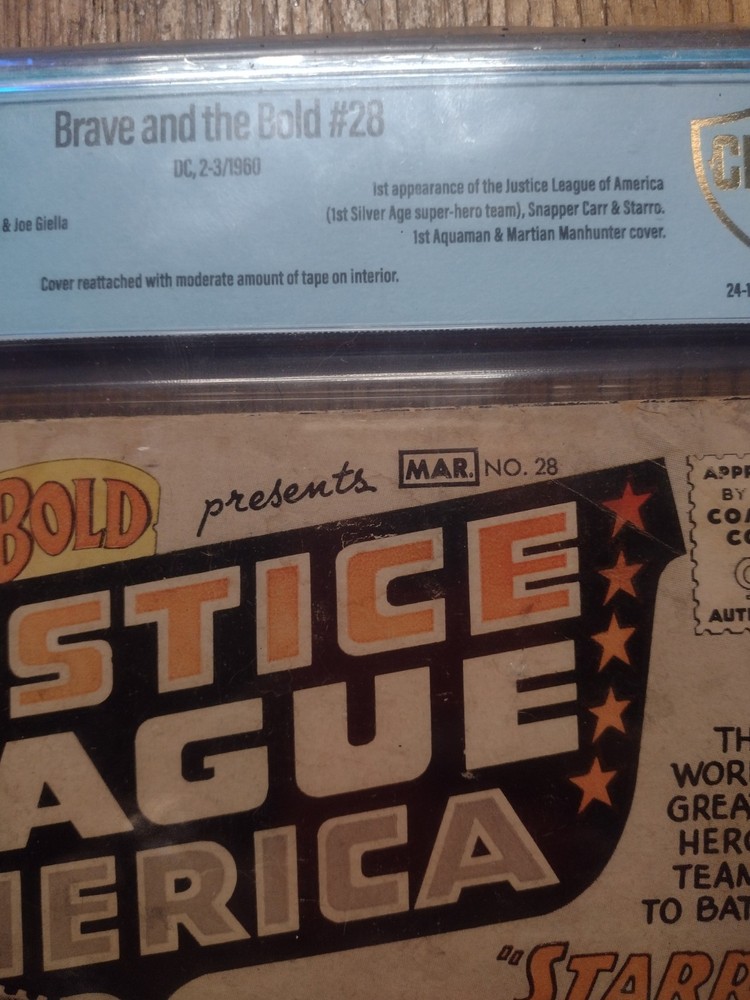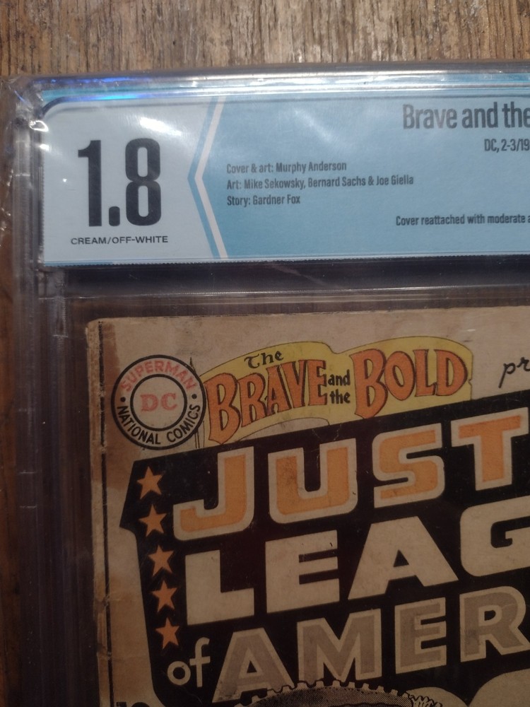 The product is a vintage US comic book, BRAVE AND THE BOLD #28 from 1960, featuring the first appearance of the Justice League of America. This single issue in color format, part of the DC Universe, was written by Gardner Fox and illustrated by Mike Sekowsky. The comic, graded at 1.8 Good- by Comic Book Certification Service (CBCS), is a valuable collectible for fans of superheroes and vintage comics. Make an offer