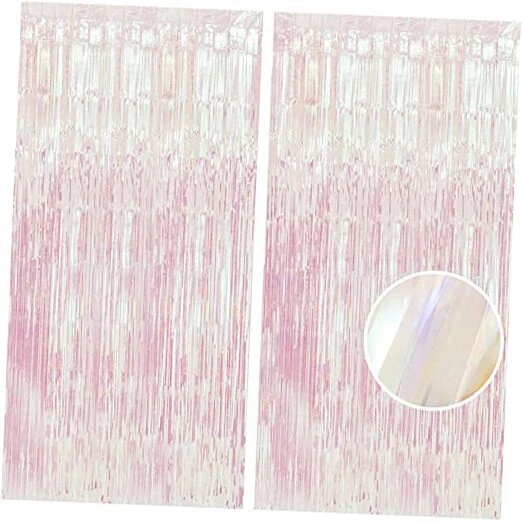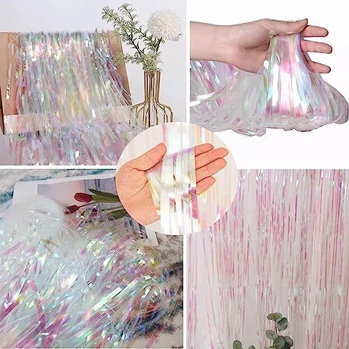 BRAVESHINE Party Decorations Iridescent Foil Fringe Backdrops - 2 Pack Clear