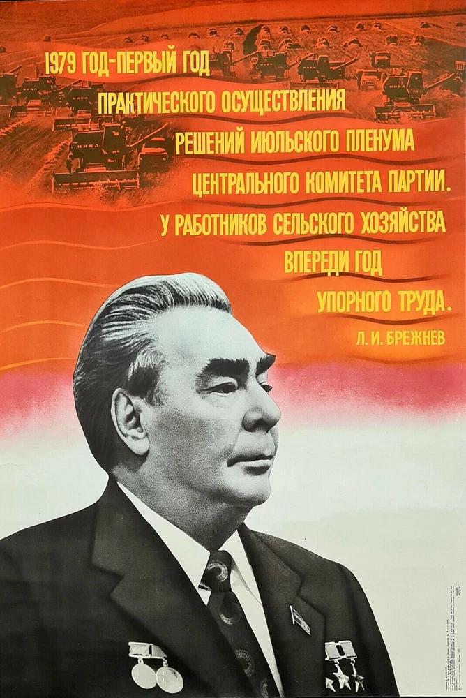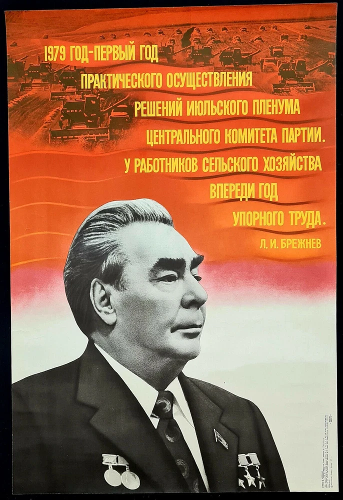 Original slogan on the poster: 1979 ГОД - ПЕРВЫЙ ГОД ПРАКТИЧЕСКОГО ОСУЩЕСТВЛЕНИЯ РЕШЕНИЙ ИЮЛЬСКОГО ПЛЕНУМА ЦЕНТРАЛЬНОГО КОМИТЕТА ПАРТИИ. У РАБОТНИКОВ СЕЛЬСКОГО ХОЗЯЙСТВА ВПЕРЕДИ ГОД УПОРНОГО ТРУДА. Л.И. БРЕЖНЕВ. Literally English translation: 1979 - FIRST YEAR OF PRACTICAL IMPLEMENTATION OF THE DECISIONS OF THE JULY PLENUM OF THE CENTRAL COMMITTEE OF THE PARTY. THE WORKERS OF AGRICULTURE THERE IS COMING THE YEAR OF HARD WORK. L.I. BREZHNEV POSTER ARTIST: ARSEENKOV VIKTOR FEDOROVICH PRINT YEAR: 1979 SUBJECT: AGRICULTURE & CPSU TASKS LANGUAGE: RUSSIAN PRINT RUN: 100.000 PUBLISHED BY: "PLAKAT", MOSCOW SIZE: IN: 22 ½ x 33 = CM: 57 x 84 CONDITION: FLAT (SHIPPING ROLLED), VERY GOOD The poster calls all Soviet agriculture workers work hard at coming 1979 year in order to implement the agricultural plans approved by Communist Party of Soviet Union. The poster is in a very good shape. Before your bid please consider the poster condition from attached pictures and text description, if you still need more information please feel free to require additional pictures or video, it would be my pleasure to assist you with any questions regarding this auction. Shipping rolled in a hard plastic tube. www.facebook.com/sovietartposters Listing and template services provided by inkFrog