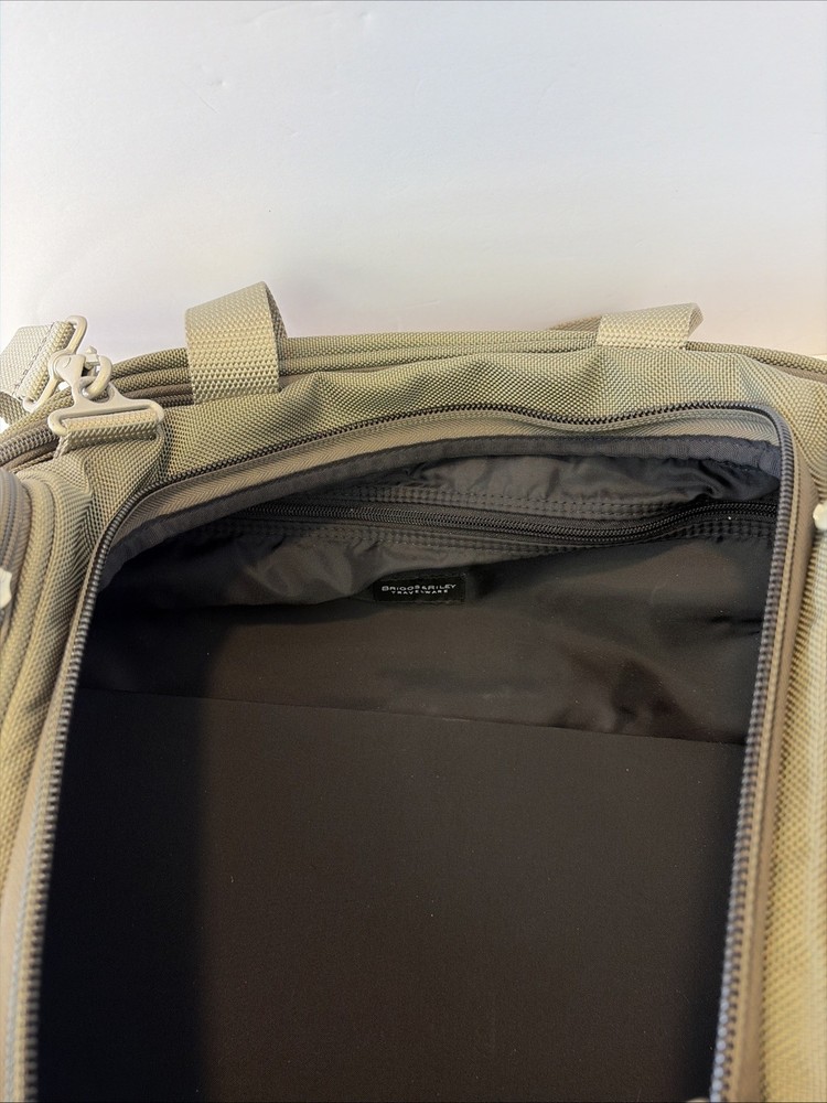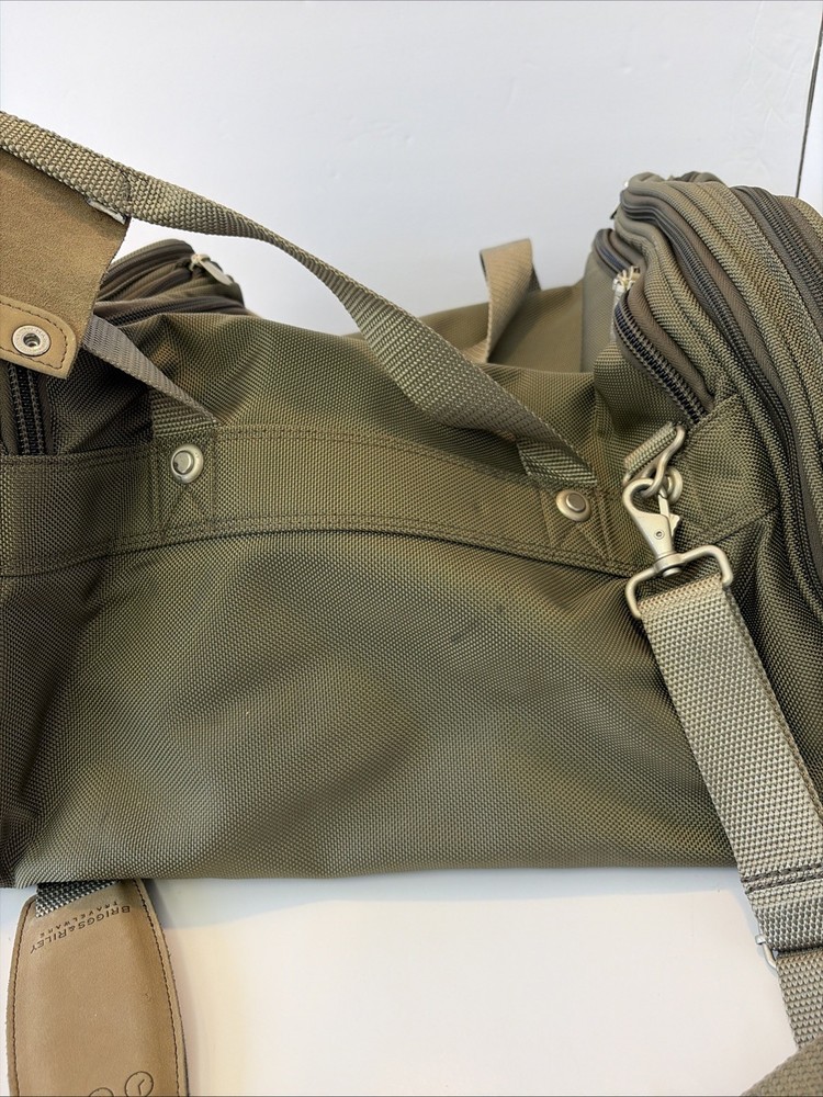 The BRIGGS & RILEY Baseline Double Expandable Cabin Carry-On Weekender Duffle Bag 21 is a versatile and durable travel essential. Made of sturdy nylon material, this green bag features a solid pattern and is designed for weekend getaways and short trips. With its expandable design and suitcase-style construction. The adjustable shoulder sling adds extra mobility, while the unisex adult design makes it suitable for any traveler. Trust the Briggs & Riley brand for quality and reliability in your next adventure. No wheels.