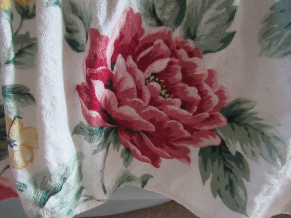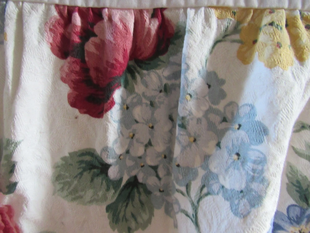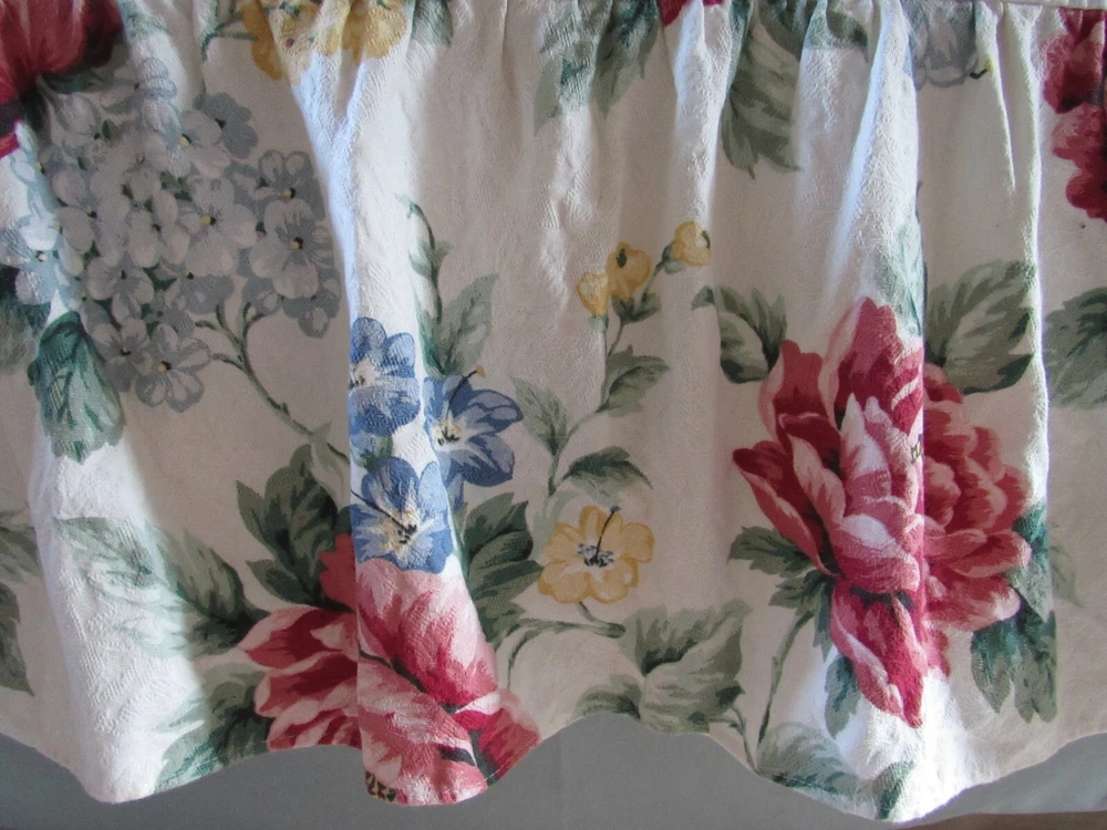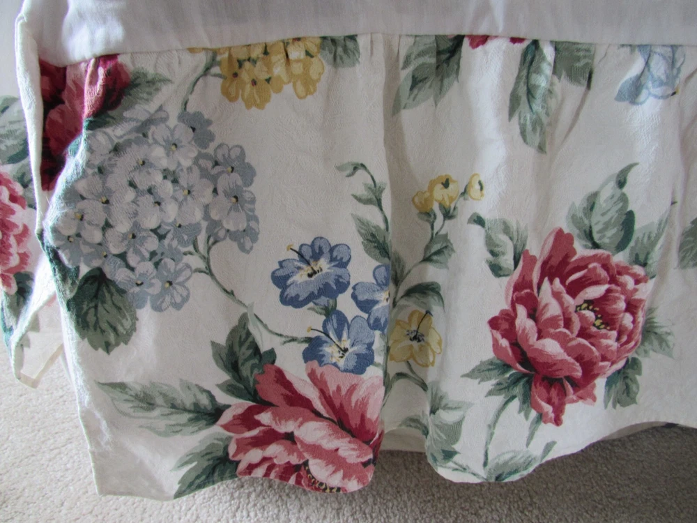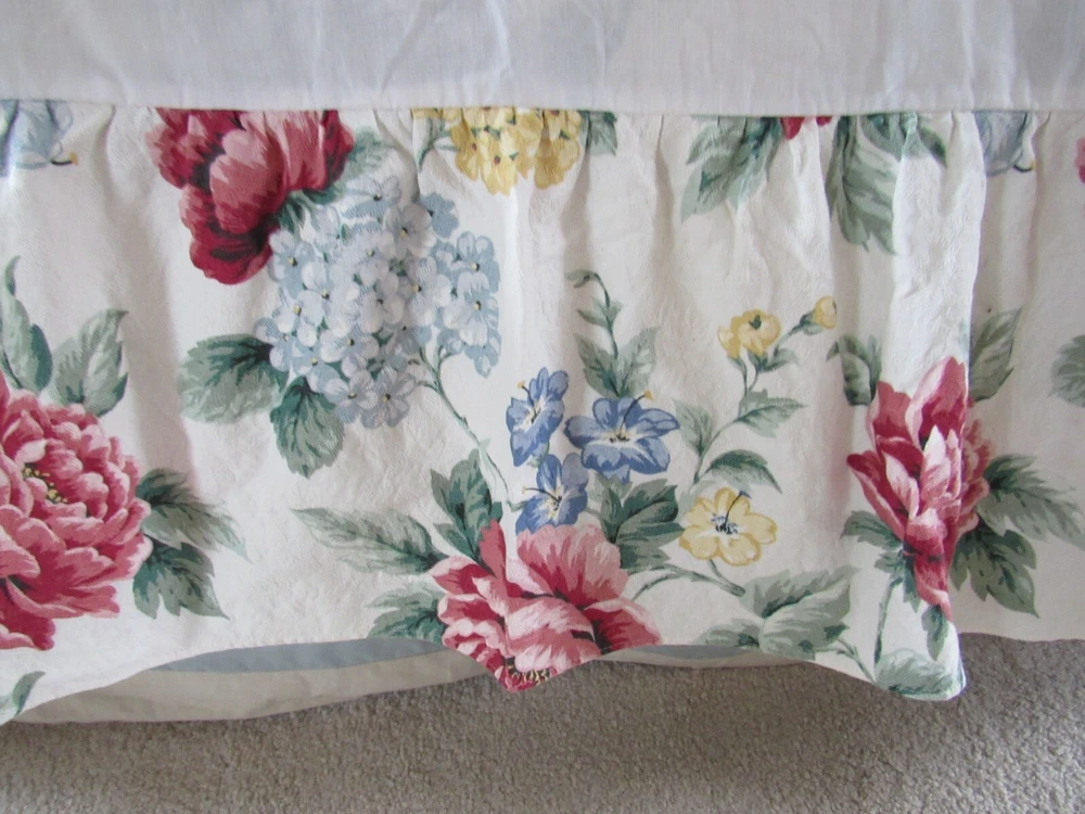 Very Pretty BLUEBERRY LANE Bedskirt Bright Colorful Flowers of Pink, Blue, Green & Yellow on Textured White Fabric 59" Platform with 13" Drop High Quality Fabric; Nice & Thick I believe it is from Italian Fabric from the Research I Found Excellent Condition; Never Used Weighs 2 1/2 Lbs Unboxed