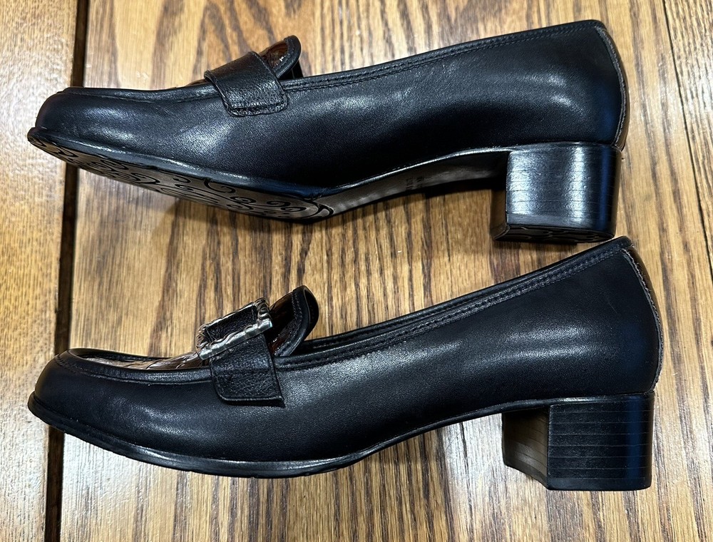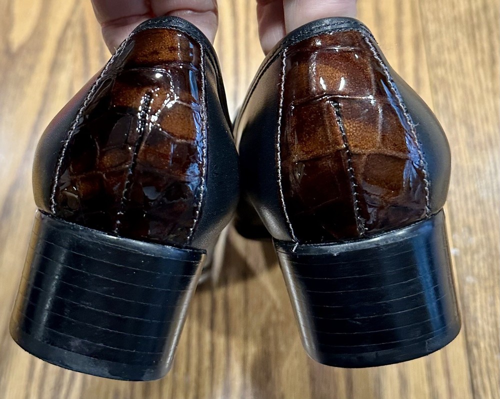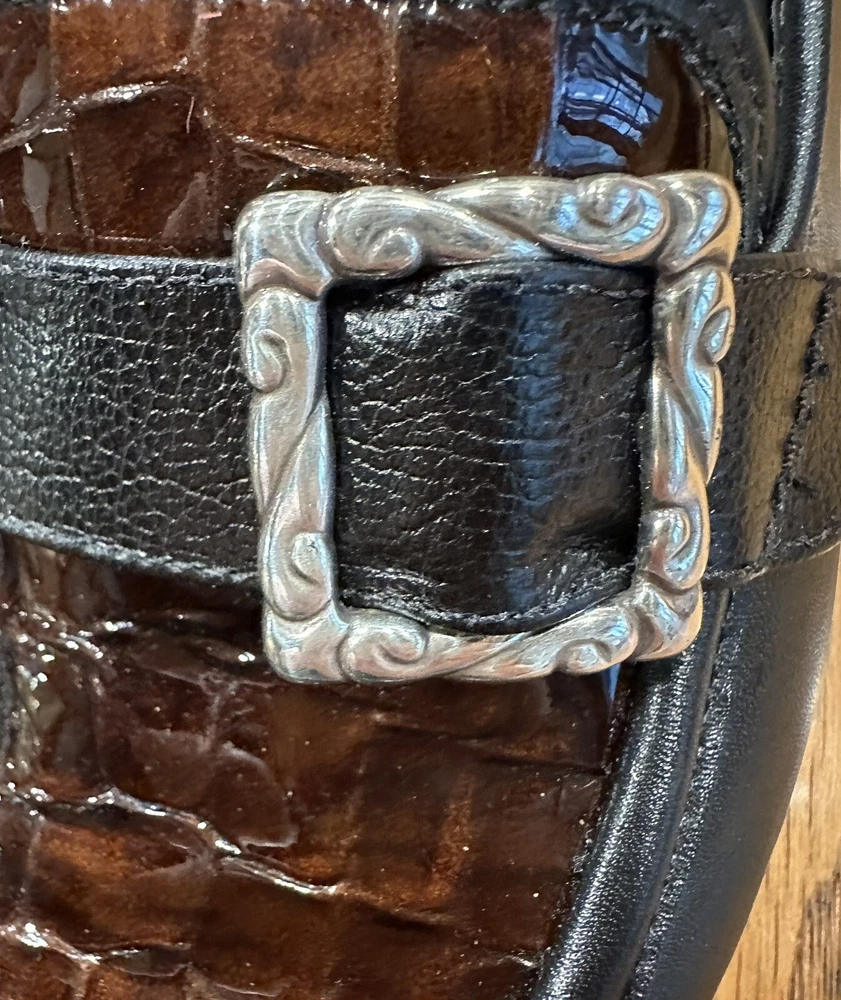 Cute Croc embossed, multi-color Adele leather loafers Black base and heel, golden, shiny brown tops and backs, with silver buckle accents 1.5" heel heights, block style heels size 7.5M by Brighton Brand new, no box Items will always be mailed within one business day of purchase, and by using the most reliable and cost efficient method, usually Priority. If there is a huge difference in price, you will receive a shipping credit. I want to foster great lines of communication with my buyers. Please check out all photos, and feel free to ask questions before purchase. Thanks for looking, and check out my other fab shoes and handbags for sale.