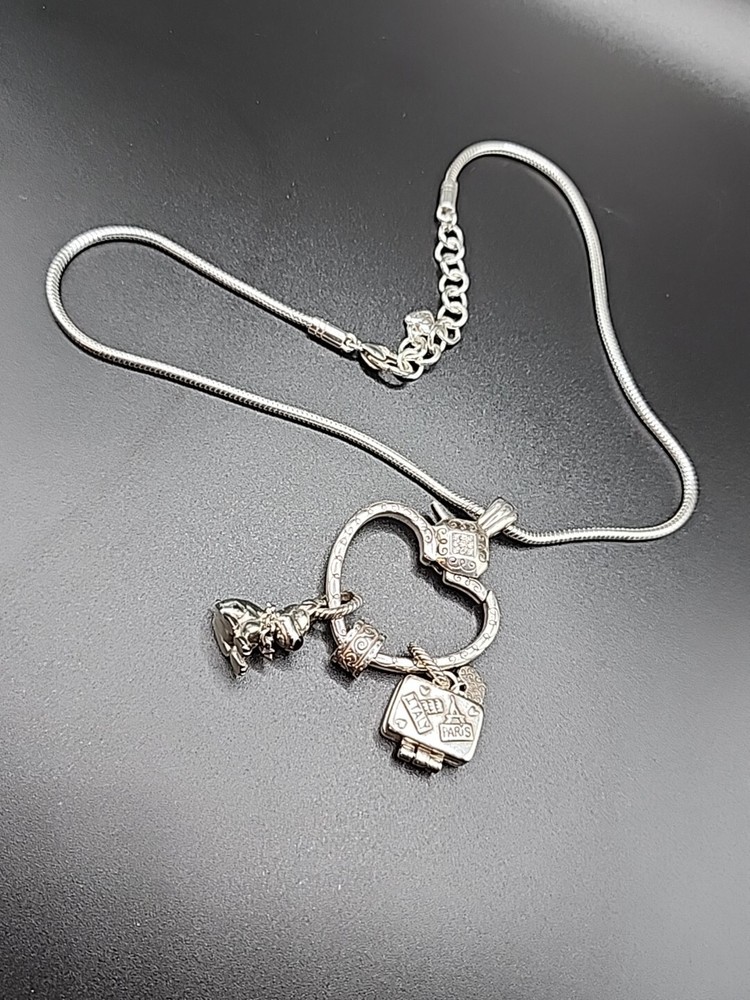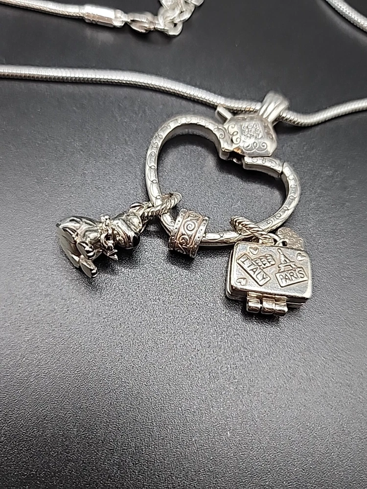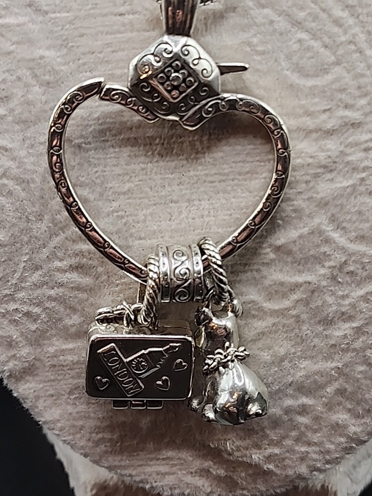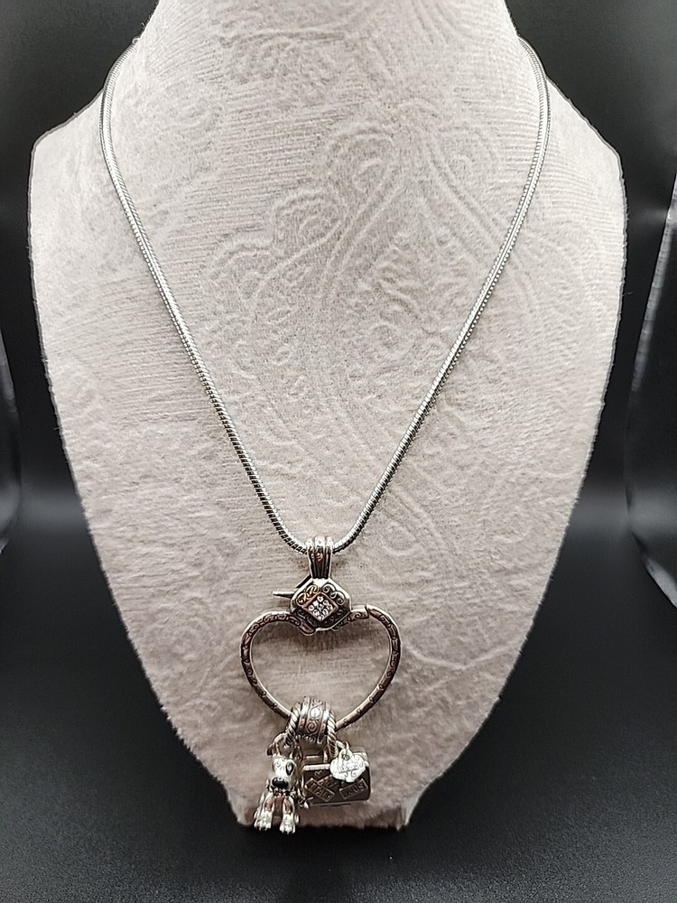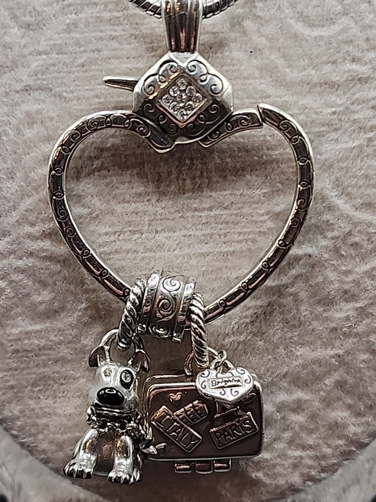 This beautiful necklace from Brighton features a stunning heart-shaped pendant that is perfect for adding a touch of elegance to any outfit. The pendant is designed to hold additional charms, such as the included dog and luggage charms, allowing you to personalize the piece to suit your individual style. Crafted from high-quality materials, this necklace is both durable and stylish, making it an ideal choice for anyone who values quality craftsmanship and timeless design. Whether you're shopping for yourself or looking for the perfect gift for a loved one, this necklace is sure to impress.