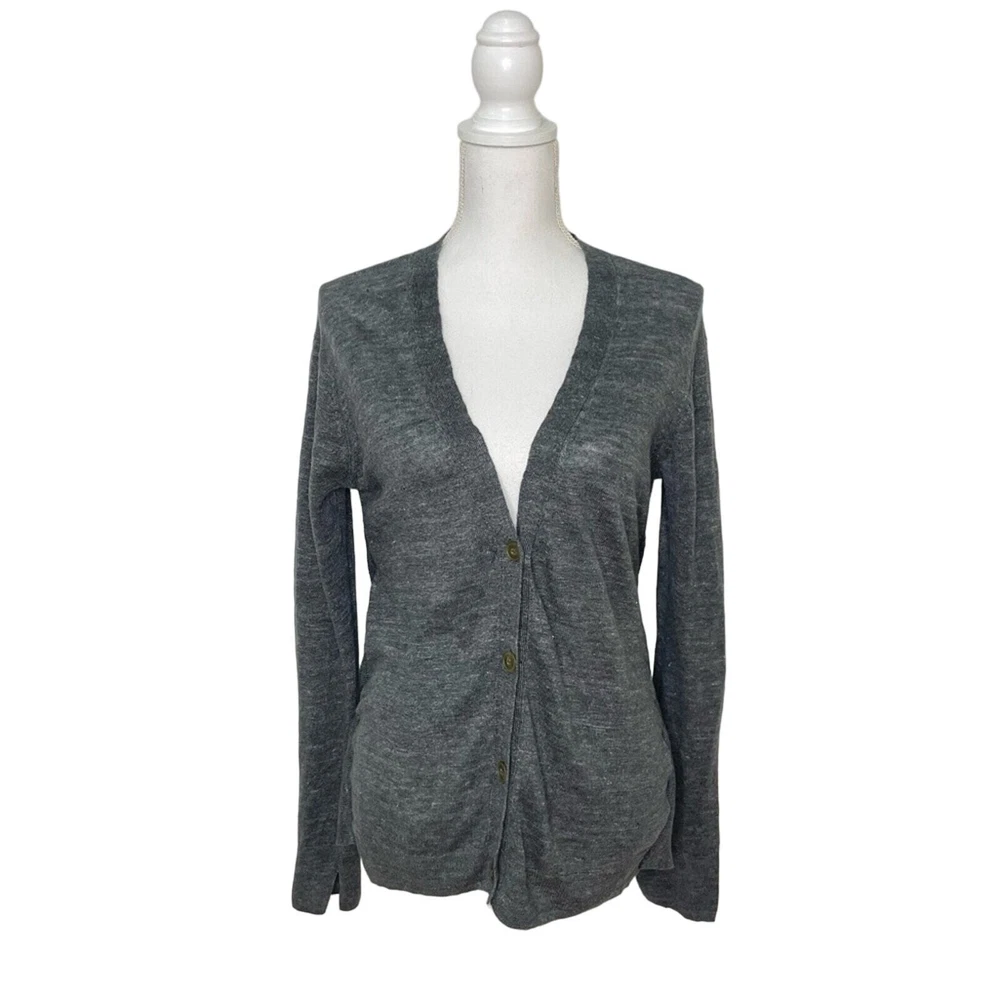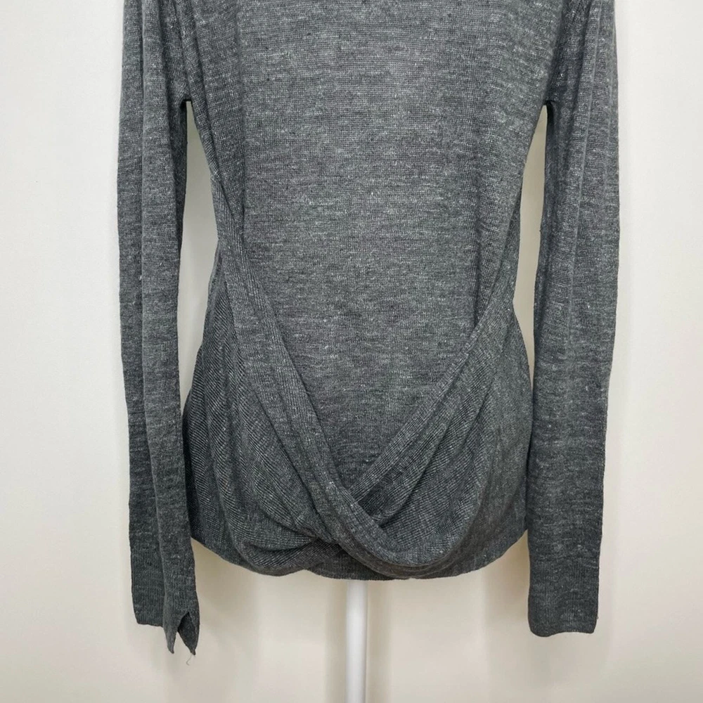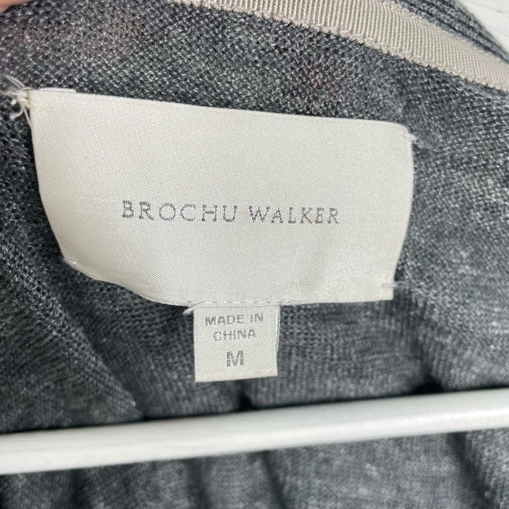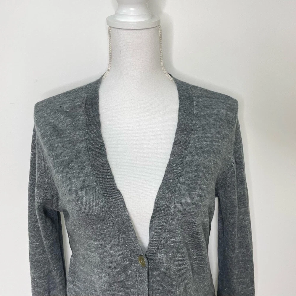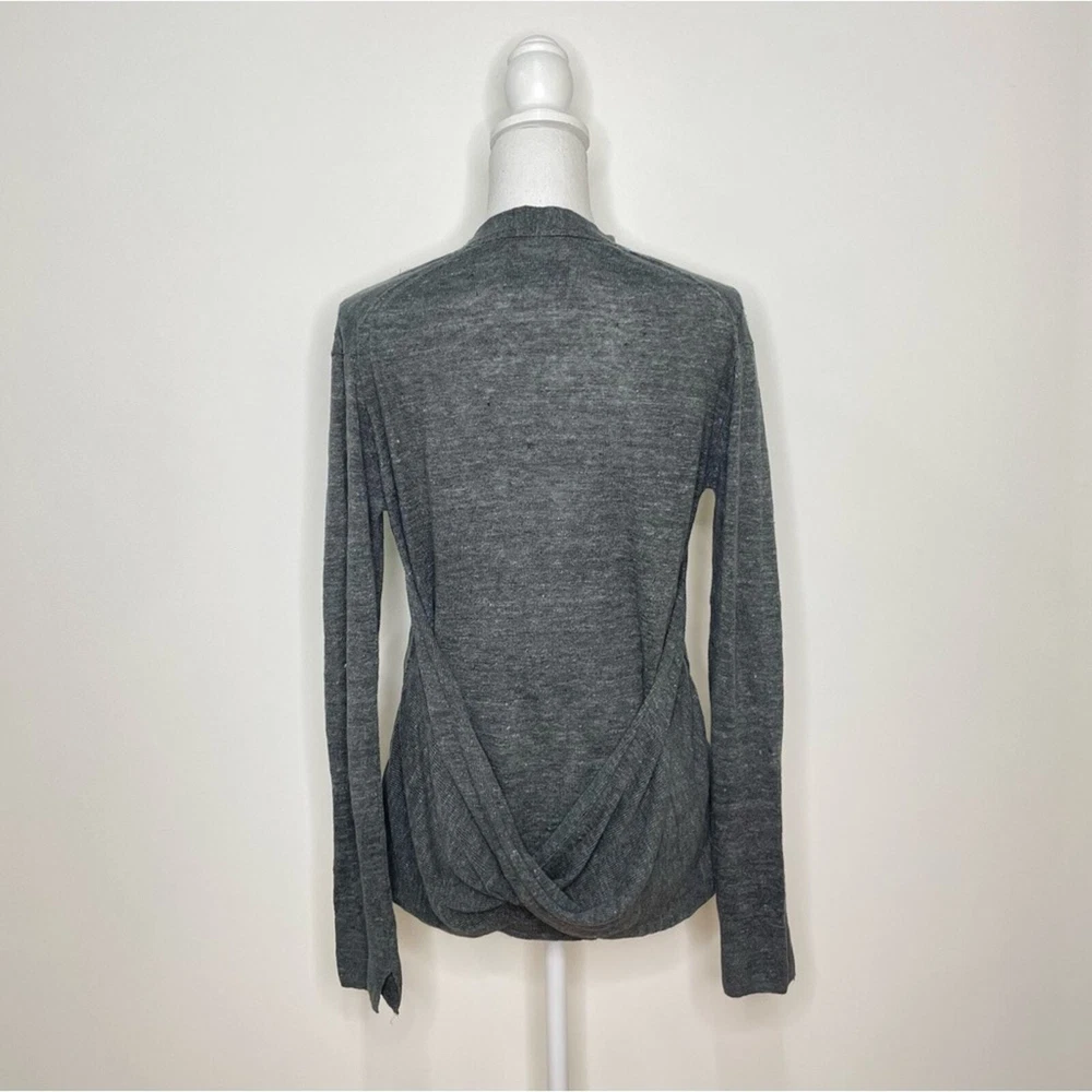 BROCHU WALKER Dark Gray 100% Linen Back Twist Detail V-Neck Cardigan Sweater Heathered dark gray V-neck button down Twist detail in back Long sleeves Size medium *approximate measurements: Pit to pit- 19.5” Length- 24” *excellent preowned condition