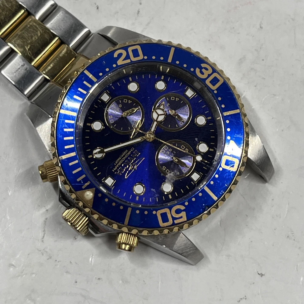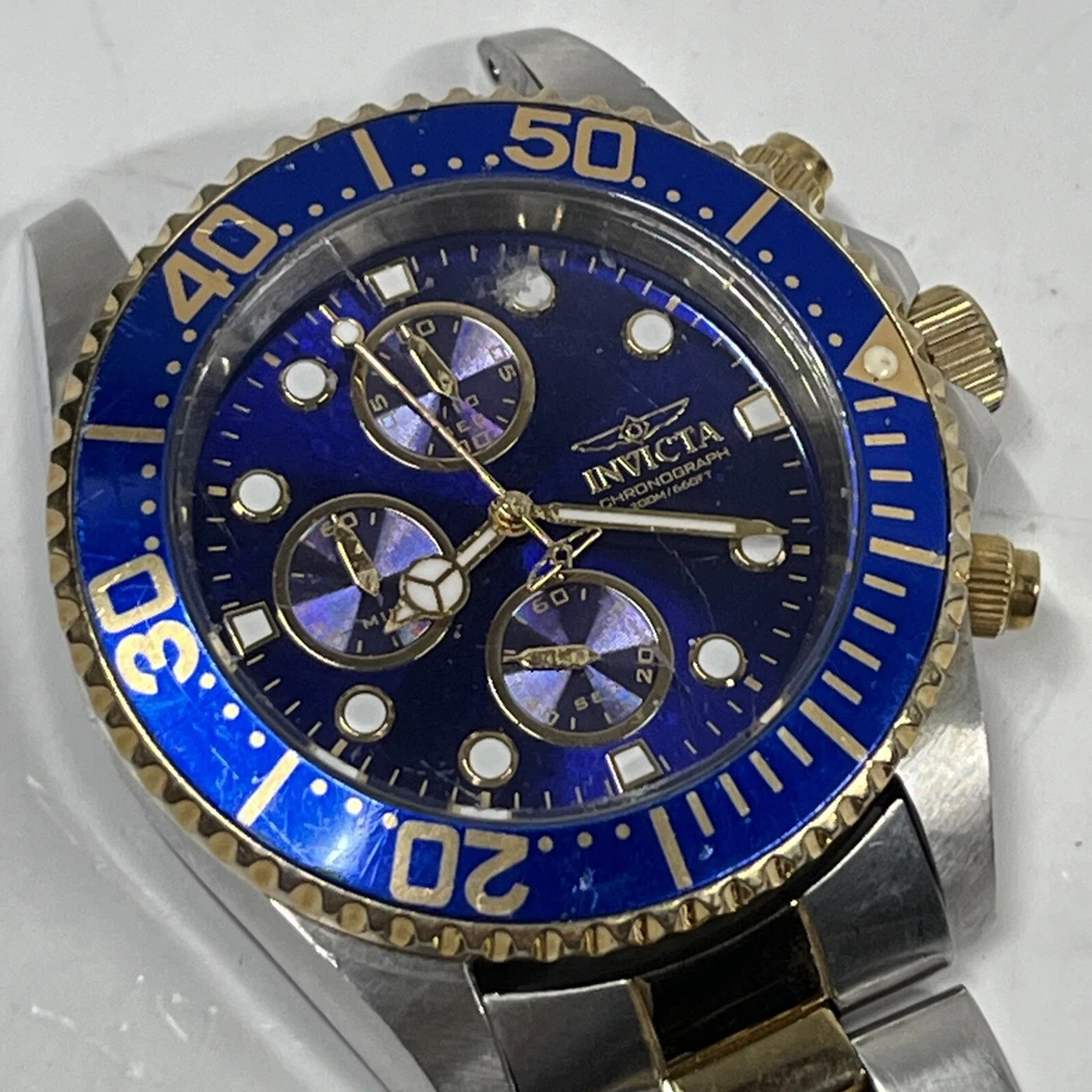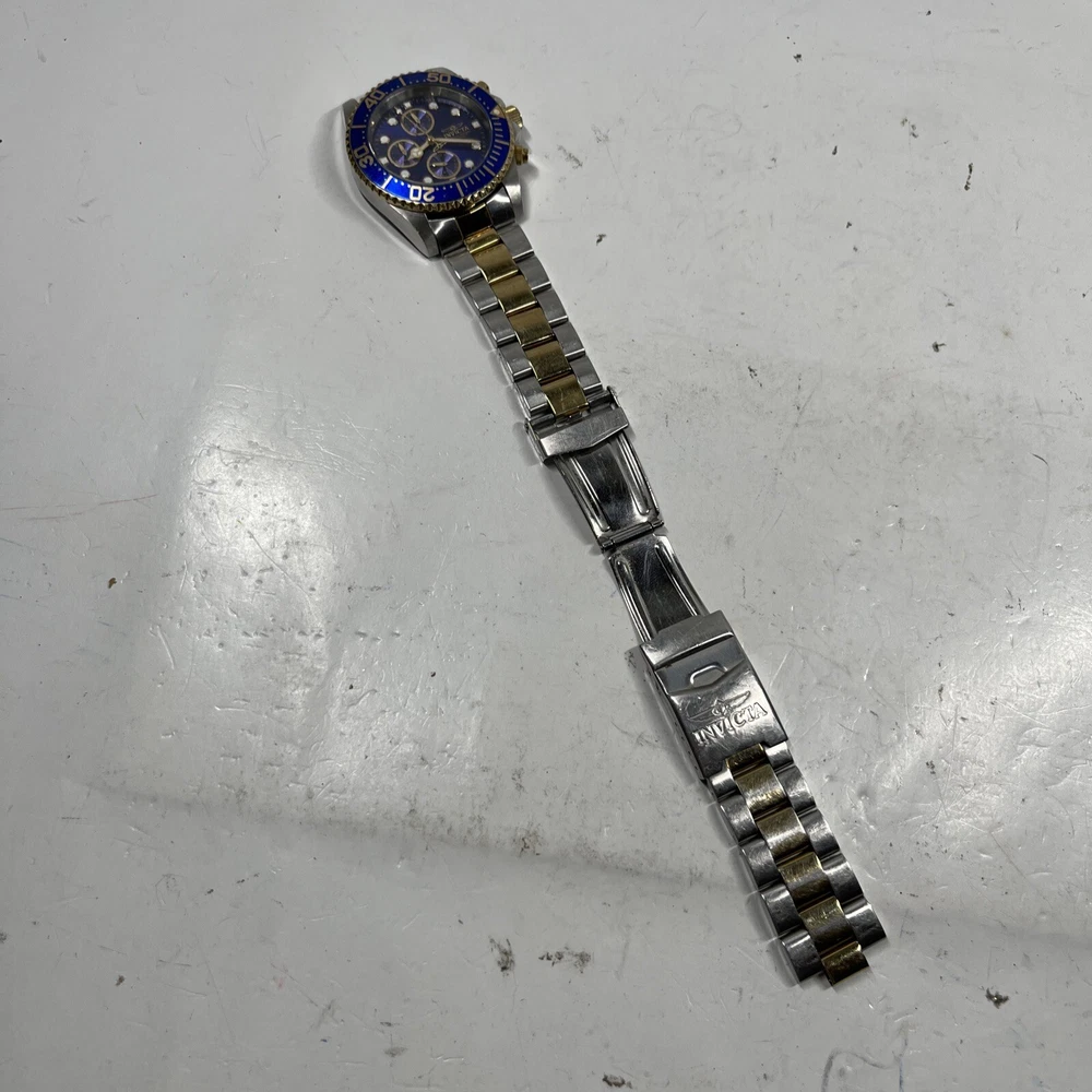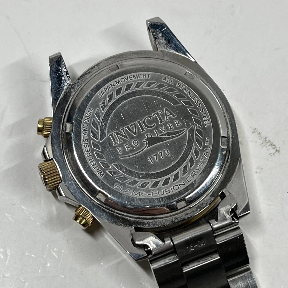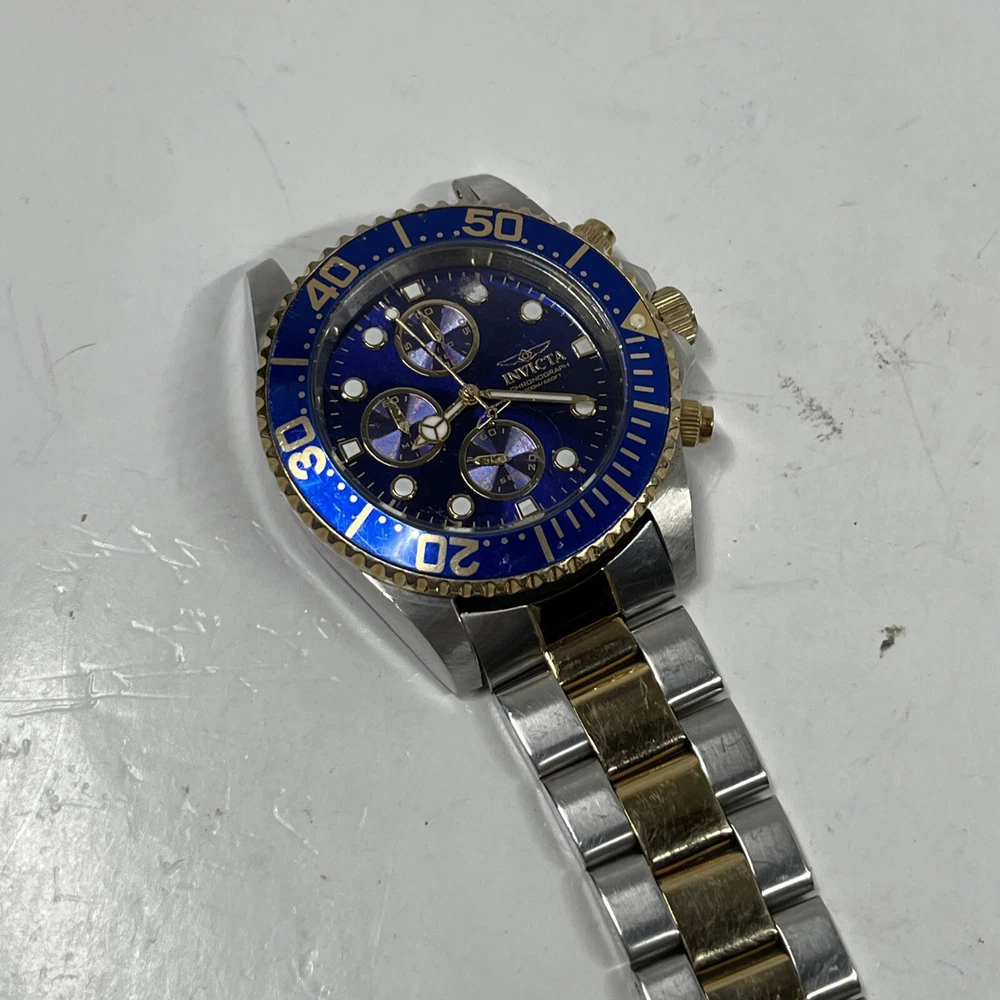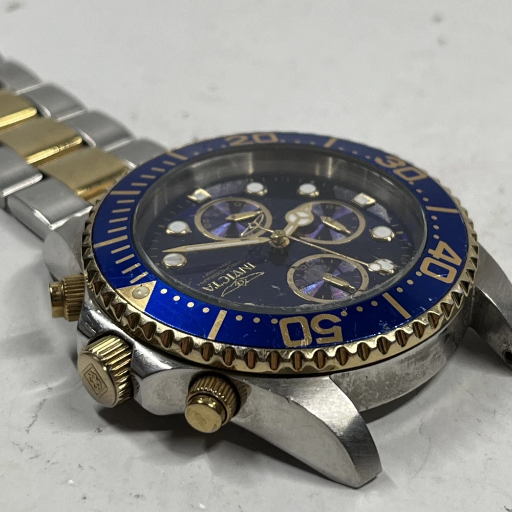 (BROKEN FOR PARTS) Invicta Pro Diver Chronograph Blue Dial Men's Watch 1773 Watch will come exactly as pictured. It is broken and non operational, may need a battery. The crown is broken off when pulled outwards. The band is broken and missing a link and bar. Inspect all photos and understand this watch is for parts or a project. Thank you for viewing! We appreciate your business from the bottom of our hearts. We pack and ship all items same or next business day. We ship with USPS Ground Advantage. Always free shipping for all items across our entire store. All of our listings and descriptions are made in the best faith possible to accuracy and honesty of what we are offering. We inspect EVERY SINGLE ITEM to the best of our knowledge and ability before making it available for sale. Why shop with us? We are in the business of your satisfaction here at New Era Deals. You do not need to look any further when it comes to friendly, helpful customer service. Do not hesitate to ask us any questions. If by chance any issue arises with an item, we guarantee we will help find a solution. 30 day returns are accepted for all items available in our store. At the end of the day, we put our customers happiness above all. Please note that while we do offer returns on every item in our store, we have a 0 tolerance policy for fraudulent and unfaithful returns. If you are found to be stealing or abusing our return policy (i.e. returning an empty box or different item from what was purchased) we will 100% reach out to eBay and the local authorities. PLEASE use returns in an honest manner. Our story: We are a small group of eBay sellers with over 20 total years of experience selling on eBay. We collaborated in January 2024 to create project New Era Deals! Selling here on eBay is our pride and passion and lets us express our entrepreneur goals. We are very pleased to bring to our valued customers quality products across endless categories. We appreciate every single one of our past, present, and future customers very deeply!