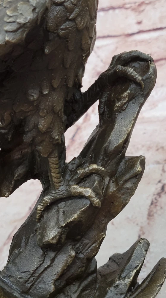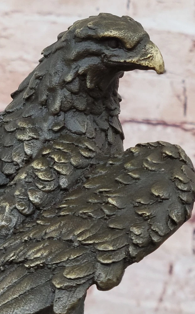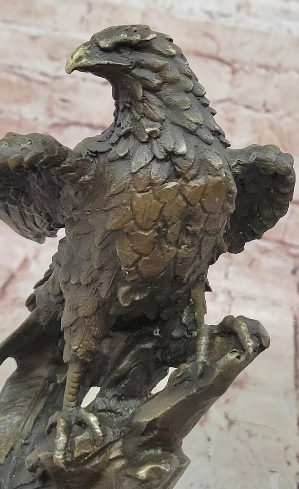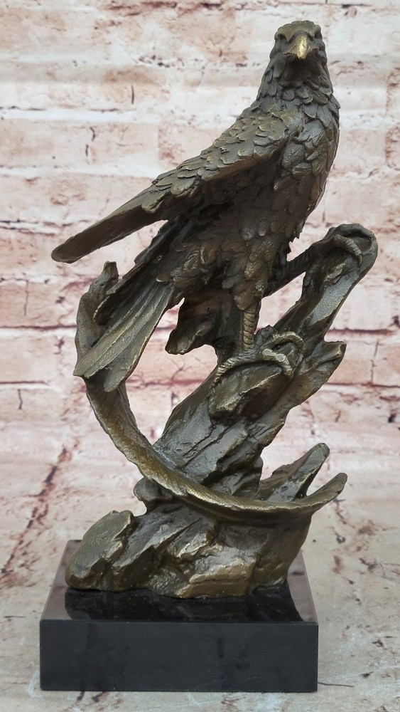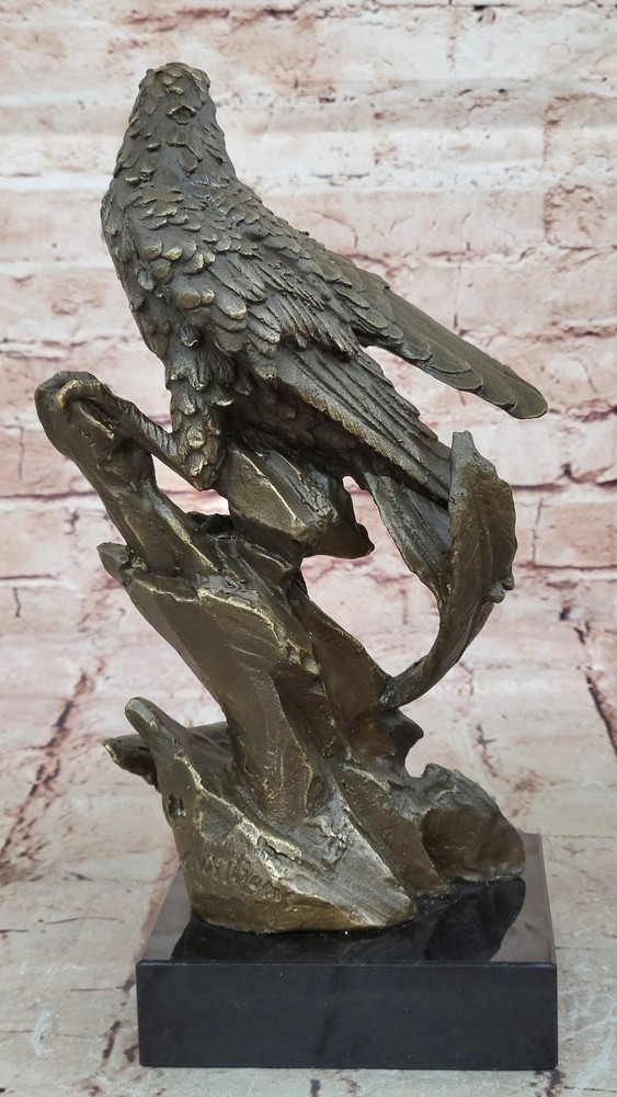 BRONZE EAGLE LARGE SIGNED COLLECTOR MAGNIFICENT STATUE SCULPTURE ARTWORK DEAL BRONZE EAGLE LARGE SIGNED COLLECTOR MAGNIFICENT STATUE SCULPTURE ARTWORK DEAL Condition : This sculpture is in perfect condition Bronze Dimensions with Marble Base: Height 11" X Width 5.5" Marble Dimensions:5.5" X 5.5" Height without base:10" Weight:10 LBS Inventory:54YDW1164845 Perched majestically atop its nest, this bronze sculpture portrays an eagle in a moment of serene contemplation. With keen eyes and outstretched claws, the eagle maintains a vigilant watch, ready to swoop down upon its prey with unrivaled precision. Every feather is meticulously crafted, forming a harmonious symphony of ovals that accentuate the bird's graceful silhouette. Its beak, sharp and pointed, hints at the predator's power and agility. Crafted using the time-honored lost-wax casting method, this sculpture exemplifies the dedication and expertise of the artist. The 100% bronze composition ensures its durability and longevity, while the brown patina finish adds depth and character to the piece. Resting on a sturdy marble base, this artwork is elevated by its detailed bronze plinth, showcasing the meticulous attention to detail. To authenticate its origin and quality, the sculpture bears the signature of the esteemed artist, Miguel Lopez. Invite the spirit of the wild into your space with this captivating eagle sculpture. Its commanding presence and lifelike features make it a perfect centerpiece for nature enthusiasts and art collectors alike. Let this bronze masterpiece bring the untamed beauty and grace of the eagle's world into your home or office, reminding you of the majesty and power found in nature's creations. Falcon Eagle Hawk Perched on Branch Bronze Metal Statue Sculpture on Marble Base 11\" x 5.5\" YDW-116 Video will open in a new window Using the eBay App? Paste link into a browser window: [isdntekvideo] Shipping Terms : Most of our items are shipped via USPS (United States Postal Service) mail or UPS. Most orders are shipped within 24-48 hours of purchase. Please be aware that not all items are available for USPS shipping due to size and weight. We do ship to Hawaii, Alaska, Canada, Puerto Rico, APO/AE, and U.S. Virgin Islands, however, an additional charge may be required. Please contact us before making any purchases in these areas. For Non-USA customers, you may be responsible for all duty, tax, brokerage fees that may be due upon delivery (shipping costs cover freight charges only). We also ship internationally. Please refer to the "Shipping and Handling" chart for the rates for each area. Payment : We accept just about any form of payment. PayPal, Master Card, Visa or American Express credit cards. Money orders, cashiers checks, and even personal or business checks. For governmental institutions, we will also accept a purchase order. Please understand that for personal or business checks we have to wait for the check to clear (usually 7 days) before shipping. Condition : New Detailed Hand Crafted Hot Cast Bronze Satisfaction Guaranteed. This is Stock Photo, Slight Color Variation!! Listing and template services provided by inkFrog
