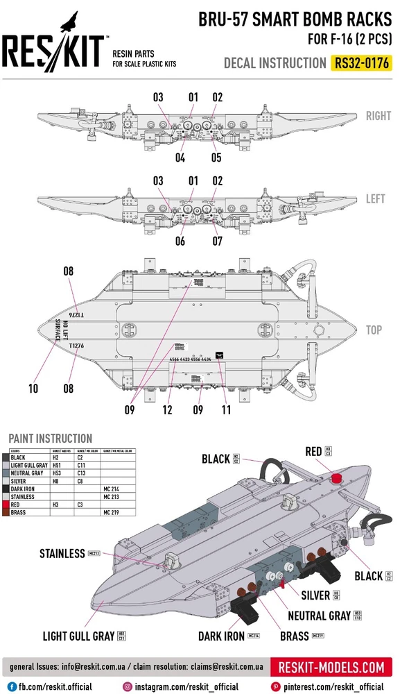 BRU-57 Smart Bomb Racks for F-16 (2 pcs) (3D Printed) Scale 1:32 ResKit RS32-0176 - for Plastic Model Kit Scale: 1/32 Manufacturer: RESKIT (Accessories for Scale Plastic Kits) Country/Region of Manufacture : Ukraine Features: Kit Condition : New in Box Type of equipment : Aircraft Type of product: PYLONS / BOMB RACKS Recommended kit: Any Category: RESIN & 3D ACCESSORIES For Scale Aircraft Model Kit ---------------------------- If you have a desire to procure a GREATER NUMBER OF ITEMS THAN WHAT IS CURRENTLY DISPLAYED, kindly let us know, and we will happily modify our offerings to suit YOUR EXACT QUANTITY NEEDS. ---------------------------- >>> Visit our eBay store! <<< You will find everything you need at great prices. Reskit: The Ultimate Upgrade for Your Scale Models Reskit is the leading provider of upgrade sets for scale models, offering a wide range of products to enhance the realism and detail of your models. Our sets include everything from engines and interiors to exterior accessories and weapons. Whether you're a beginner or a seasoned modeler, Reskit has the upgrade sets you need to take your models to the next level. Here are just a few of the benefits of using Reskit upgrade sets: Increased realism and detail: Our sets are made with high-quality materials and components that will add a touch of authenticity to your models. Improved performance: Our sets can help improve the performance of your models, making them more realistic and engaging. Reskit upgrade sets are the perfect way to add realism, detail, and performance to your scale models. With our wide range of products, you can find the perfect upgrade set to transform your models into showpieces.