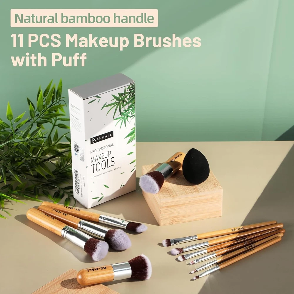 BS-MALL 11-Piece Synthetic Kabuki Makeup Brush Set with Bamboo Handles