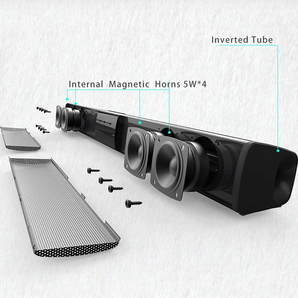 Product Description Surround Sound Bar 4 Speaker System Wireless BT Subwoofer TV Home Theater Remote Features: 1. Excellent Sound Performance : Completes your home theatre system with four full range high quality speakers 5W x 4 speakers, this sound bar could not only deliver clear sound in wide pitch range, but also provide 360°3D surround sound stereo for your sweet home theater. 2. Wired and Wireless Audio Streaming :Our high-quality soundbar for TV is powered with integrated inputs to bring all media in life with amplified audio. It can easily connect to your TV, pc or laptop via AUX, USB, coaxial. Features 5.1 Bluetooth with up to 10m range so you can stream with your mobile phone or tablets anywhere in the room with just a tap of a finger. 3. Buttons or Remote :Our high-quality soundbar for TV is powered with integrated inputs to bring all media in life with amplified audio. It can easily connect to your TV, pc or laptop via AUX, USB, coaxial. Features 5.1 Bluetooth with up to 10m range so you can stream with your mobile phone or tablets anywhere in the room with just a tap of a finger. 4. 22 Inch Portable Slim Design:The light-weight body allows you to take the great sound experience with you anywhere you go. However, the small body does not play games! Enjoy the sound at the maximum 10W output for 3-5 hours non-stop.With the sleek look, our soundbar is easily incorporated in your home with a fashionable take.Can be carried freely, wherever in backyard, outdoor activity, bedroom,car, garage and so on. Specifications: Channel:2.0 1. Bluetooth version: V5.0 2. Speaker: 5W×4 3. Bluetooth distance: 10M 4. Battery capacity: 2000mA 3.7V 5. Nominal voltage: DC 5V 6. Music playing time: about 5 hours. 7. Standby time: 240 hours. 8. 1A Charging time: about 2 hours. 9. Audio Input: Bluetooth, RCA , 3.5mm Aux, TF card 10.Dimension: 550 × 50 × 50mm / 21.65 inch × 1.97 inch × 1.97 inch 11.Net Weight: 860g 12.FM Radio Frequency: 87.5-108 13.Accessories: charging cable, 3.5MM-RCA cable, 3.5MM audio cable, manual 14.Support TV/PC/Phone/Tablet/Laptop/MP3/MP4/DVD player/TV Box Audio Package included: 1 x Speaker 1 x Remote Control 1 x USB Charging Cable 1 x RCA Audio Cable 1 x English Manual About Us Shipping Terms Returns Contact Us About Item All items sold by us are being described to the best of our abilities, as accurate as possible, and with utmost conscientiousness on our part. However, to avoid any potential oversights, I respectfully request your assistance in helping us to make this a mutually satisfactory transaction by THOROUGHLY reviewing item description and photos, and asking all questions PRIOR TO BIDDING. Customer Satisfactory 1.We back our commitment with superb service, 100% full money back and a customer satisfaction guarantee. 2.I am here and ready to assist you with any questions or concerns you might have before or after the purchase. 3.My goal is to make sure you are a happy customer and pleasant shopping with us. Feedback If you are satisfied with the purchase and our total service, your comment is very important in our business success. Please take a minute to leave us a positive feedback with an overall Detailed Selling Rating (DSR) of 5. Our eBay account setup auto feedback, so eBay system gives you automatically Positive feedback back after your positive feedback left. IF YOU PLAN TO GIVE US A NEUTRAL/NEGATIVE FEEDBACK OR OPEN EBAY/PAYPAL CASE, PLEASE WRITE TO US IMMEDIATELY SO THAT WE CAN DO OUR BEST TO RESOLVE YOUR PROBLEM. United States Buyers Same business day free shipping within United States All orders will be shipped through USPS First Class, UPS and Fedex depends on the weight of the items. Shipping Time Usually ,Parcel will be delivered 2-5 working day include Handling time. Sometimes shiping time may has a little delay, such as Bad wether,Holidays We stand behind everything that we sell and will do everything possible to assure you are satisfied. When you receive your purchase if you are not 100% satisfied, please sent me ebay message and we will do our best to make you happy. If you still want to return your purchase, simply ship the item(s) back to us and we will refund your original purchase price and the original shipping charge. Buyers are responsible for the postal cost of returning the items. We must be notified of the intent to return your item within 30 days of receiving the item. Items returned must be in the same condition that they were received. How to return 1,Please ask us for return address . 2,Shipping back the package . The RMA#(Return Merchant Authorization Number = Your ebay ID) must be clearly written on the return package ,Otherwise the package will be refused. 3,Sent us the return tracking number. 4,All returns will be inspected prior to a credit being issued. 1:Returns are accepted within 60 days of purchase. 2:All returned items MUST BE in the original packaging. 3:We will be happy to assist you if if any item needs to be returned or replaced 4:Please don't open a return request before contacting us first to solve, many thanks. Sent ebay message in English If you have any questions, our Customer Service staffs welcome you to sent me ebay message. We strive to answer all questions and resolve any problems as quickly as possible. Business Hours: Monday-Saturday 9:00-17:00 About Us About Item All items sold by us are being described to the best of our abilities, as accurate as possible, and with utmost conscientiousness on our part. However, to avoid any potential oversights, I respectfully request your assistance in helping us to make this a mutually satisfactory transaction by THOROUGHLY reviewing item description and photos, and asking all questions PRIOR TO BIDDING. Customer Satisfactory 1.We back our commitment with superb service, 100% full money back and a customer satisfaction guarantee. 2.I am here and ready to assist you with any questions or concerns you might have before or after the purchase. 3.My goal is to make sure 