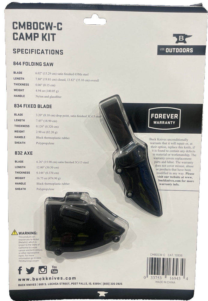 FAST FREE SHIPPING IN USA!!! ORDERS RECEIVED BEFORE 2PM - SAME DAY SHIPMENT!!! AFTER 2PM - NEXT DAY SHIPMENT!!! OUR WAREHOUSE WORKING MO-SAT(9am-9pm) CLEARANCE! Last pieces remaining—future availability currently unknown!!! "Discover our store! Explore a variety of interesting products at great prices. Don’t miss out—check it out now!" 🏕️ BUCK Knives Camp Kit – Folding Saw, Fixed Blade Knife & Axe with Sheaths Brand New • Factory Sealed • Premium Quality Gear Get ready for your next outdoor adventure with this BUCK Knives Camping Kit – a top-tier 3-piece set that includes everything you need for survival, camping, hunting, or general outdoor use. Whether you're clearing brush, processing firewood, or prepping meals at the campsite, this kit has you covered with the legendary quality BUCK is known for . 🔪 Included in the Kit: Folding Saw – Durable 6" blade perfect for cutting branches, brush, and small logs with ease. Fixed Blade Knife w/ Sheath – 3.2" drop point blade, ideal for precision cutting, food prep, and general tasks. Comes with a fitted sheath for safe carrying. Axe w/ Sheath – Rugged 6.26" blade, built for chopping, splitting, and all heavy-duty camp tasks. Includes protective sheath for safe transport. ✅ Product Highlights: BUCK Knives Quality – Trusted American brand with a long history of excellence in blade craftsmanship. All-in-One Solution – Three essential tools in one convenient package. Perfect for Camping, Survival, Hunting, Hiking, and Emergency Kits. Brand New – 100% Factory Sealed, never used or opened. Makes a Great Gift for outdoor lovers, preppers, or hunters. 💥 Don’t miss out – stock is limited! Fast shipping & careful packaging guaranteed. 📦 Order today and gear up with BUCK—the name outdoorsmen trust.