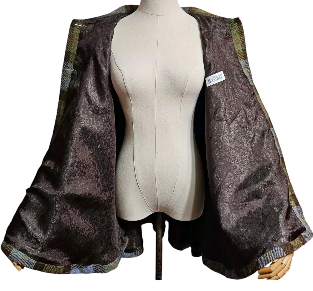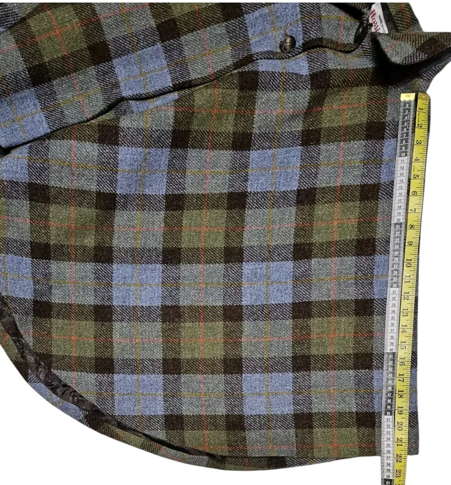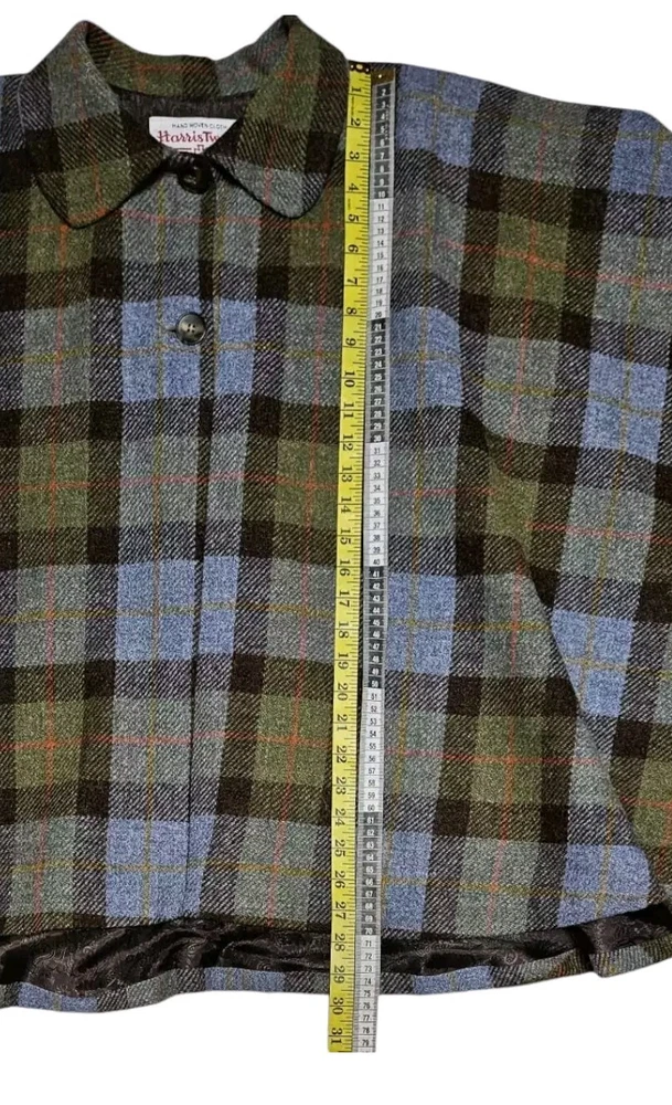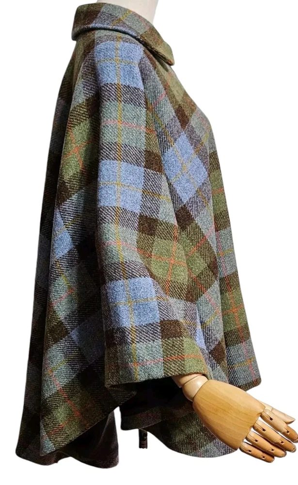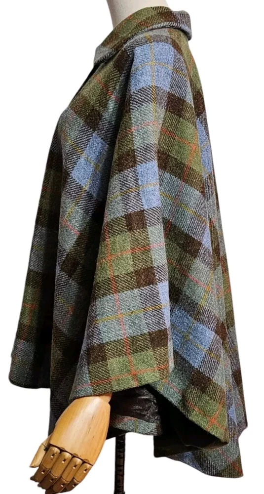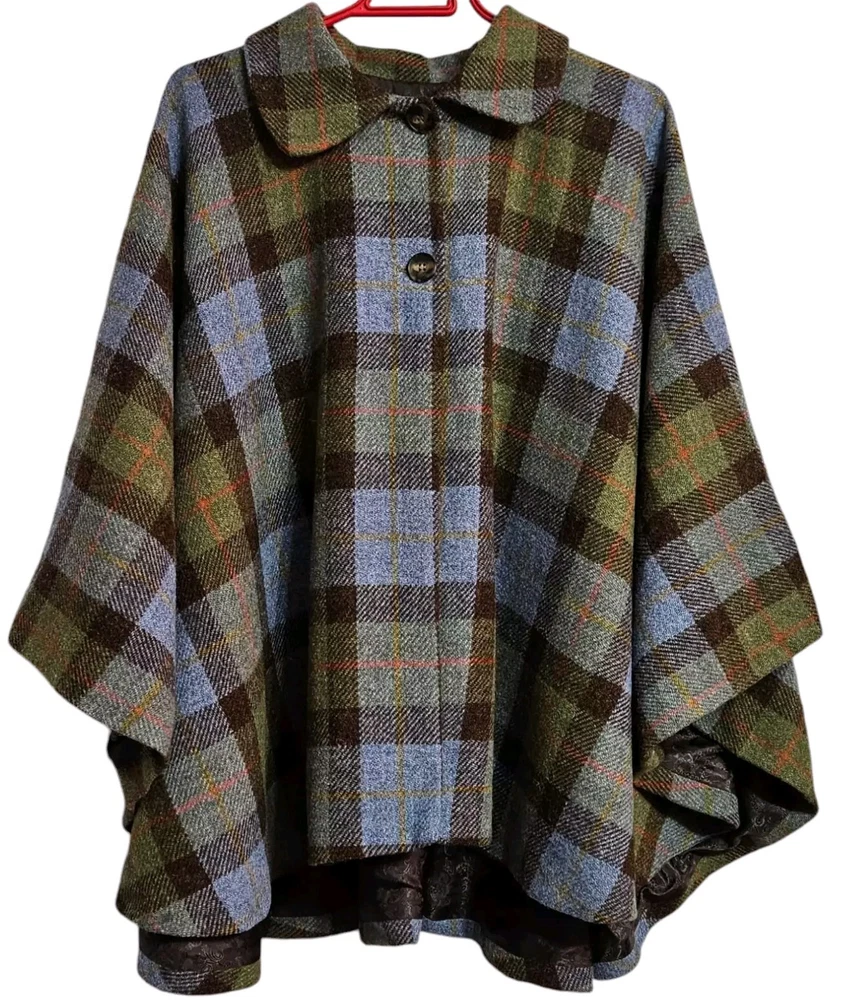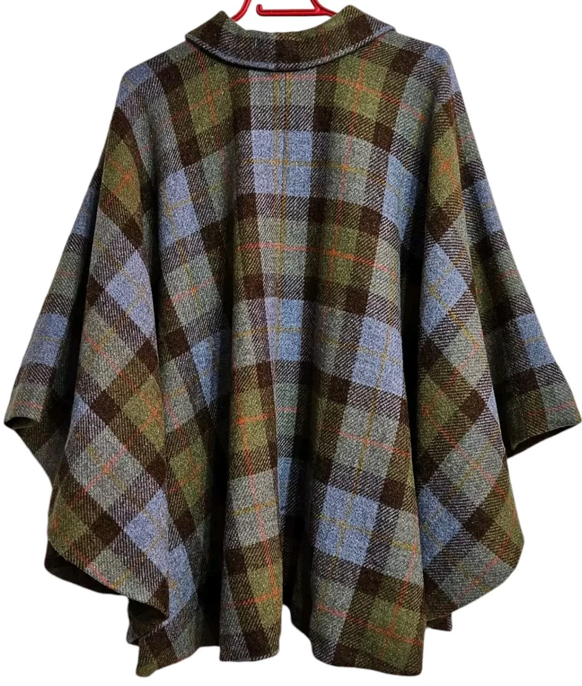 Occasion: Business, Casual, Formal, Party/Cocktail, Travel, Workwear Theme: 80s, 90s, Christmas, City, Classic, Countries, Designer, Retro, Hippie, Hipster, Movie, Peasant Personalize: No Department: Women Garment Care: Dry Clean Only Brand: BUSKTROUT Yorhshire Lining Material: 50% viscose, 50% acetate Country/Region of Manufacture: United Kingdom Closure: Button Model: x Color: multicolor, blue, green Jacket/Coat Length: Mid-Length Accents: Button Seller Notes: ““Please review the description, all photos and INTERNATIONAL shipping of the item.”” Style: poncho, cape Size: One Size/ S/M/L/XL Insulation Material: no Season: Fall, Spring, Winter Features: Collared, Lined Fabric Type: Tweed Outer Shell Material: 100% Wool Type: poncho, cape Handmade: No Sleeve Length: Sleeveless Pattern: Plaid Size Type: Regular Fit: Regular ,Relaxed