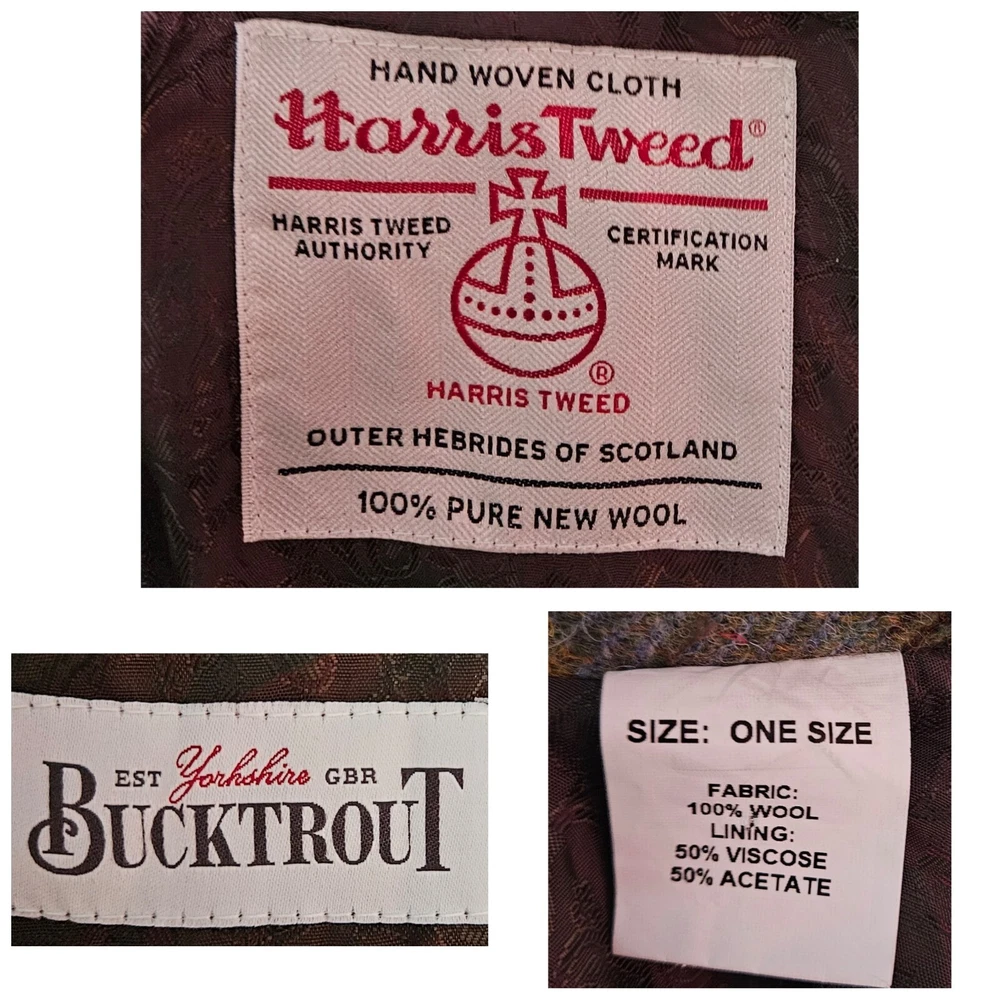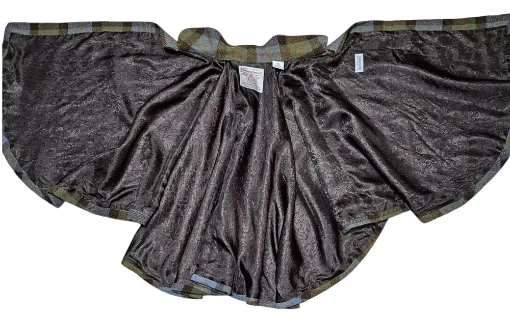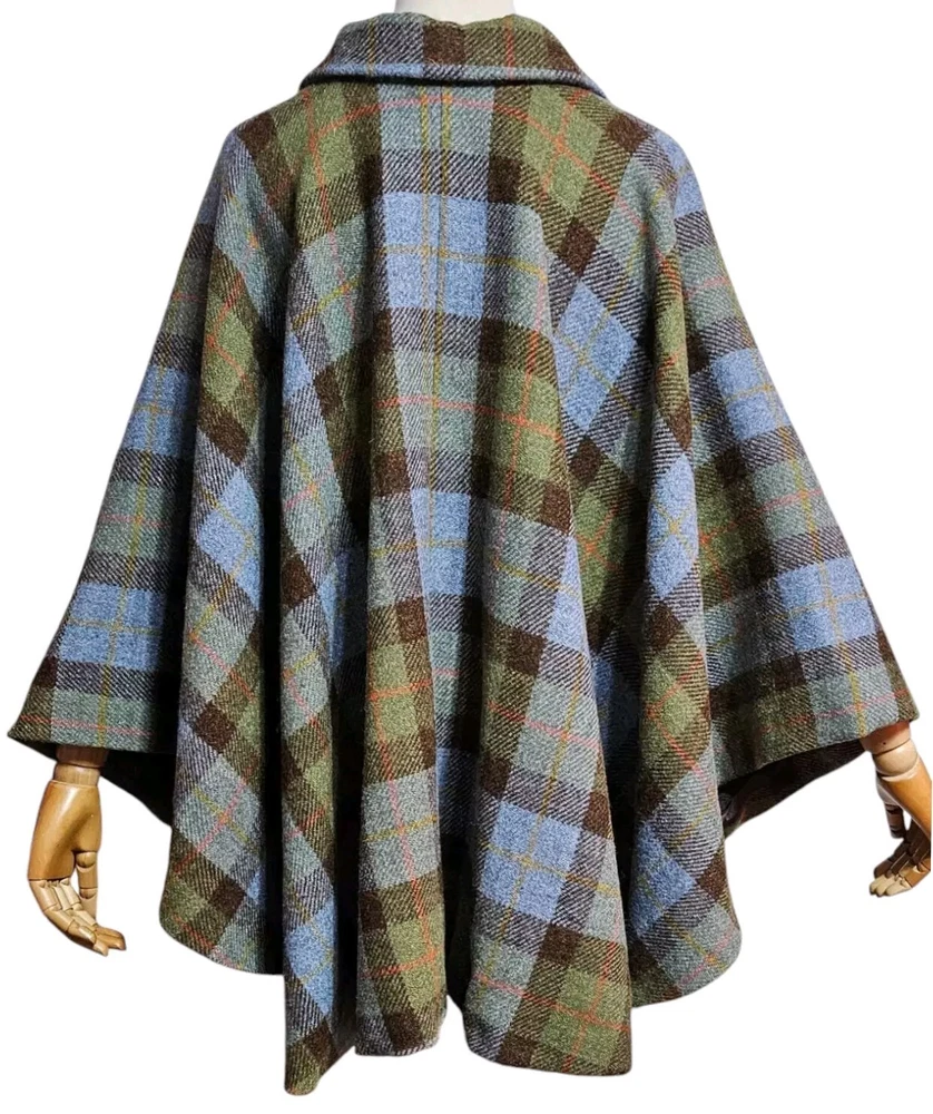 BUCKTROUT Yorhshire HARRIS TWEED Stylish Poncho /Cape ,Blue/Green Check ONE SIZE