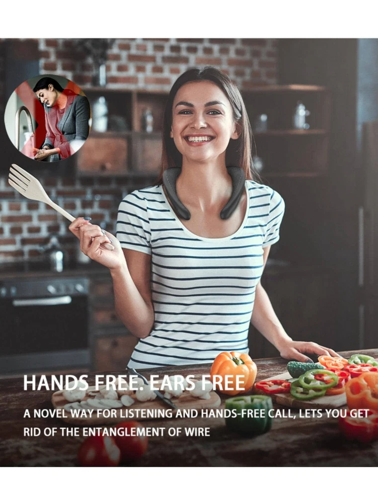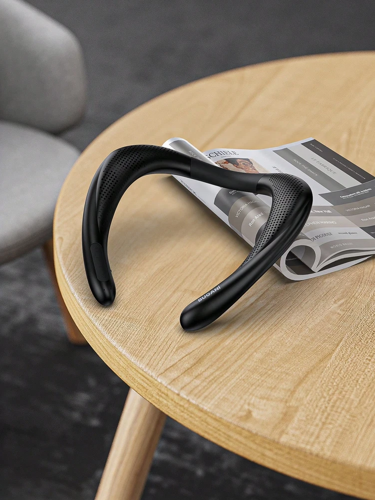 [True 3D Theater-Stereo Sound]-- Built-in 3W*2 speakers system, the wireless neck speaker produces rich sound and an enhanced bass that goes far beyond its size. Upward-facing speakers on both sides of the neck speaker produce 3D theater sound surrounding your ears to create a truly unique and immersive sound experience. [Comfortable Shoulder Speaker]-- Made of soft silicone material, this neckband speakers with ergonomic design can be adjusted to fit your neck line, and 220g weigh speaker rests on your shoulders providing a lightweight and secure fit for listening to all day. Enjoy your favorite tunes while you are cooking, resting in your yard, walking, etc. [IPX5 Waterproof & Long Battery Life]-- This waterproof wearable speaker is sweat and weather-resistant. Suitable for outdoor sports such as walking, riding bicycle, climbing mountains, etc. The neck bluetooth speaker included a premium rechargeable built-in 1000mAh battery that provides up to 24 hours of playtime at 60% volume (12 hours at 100% volume). [Hands-Free Calling & Easy to Carry]-- This wireless bluetooth speaker built-in noise-canceling microphone for a clearer sound, wearing it around your neck to reduce the burden on the ears and hands. The lightweight and bendable speaker can fit easily into your carry-on backpack, very convenient to take anywhere to listen to music, answer calls, or watch TV. [Stable Bluetooth 5.0 Technology]-- Equipped with an advanced Bluetooth 5.0 chip, the neckband speaker ensures a 33ft (10m) long-range and more stable connection. Compatible with most bluetooth devices and give you sound for listening and conversations. Package included: 1* Bugani M115 Wireless Neck Speaker, 1*Type-C charging cable, 1*Quick Users Guide.