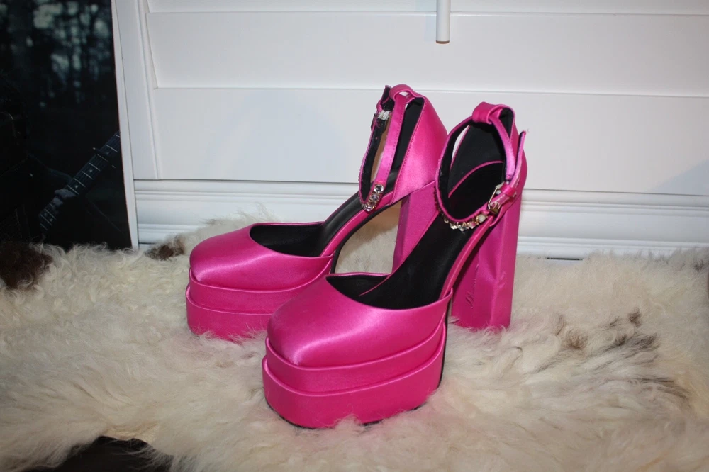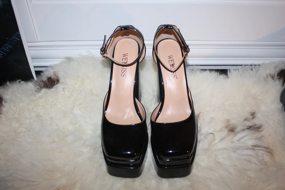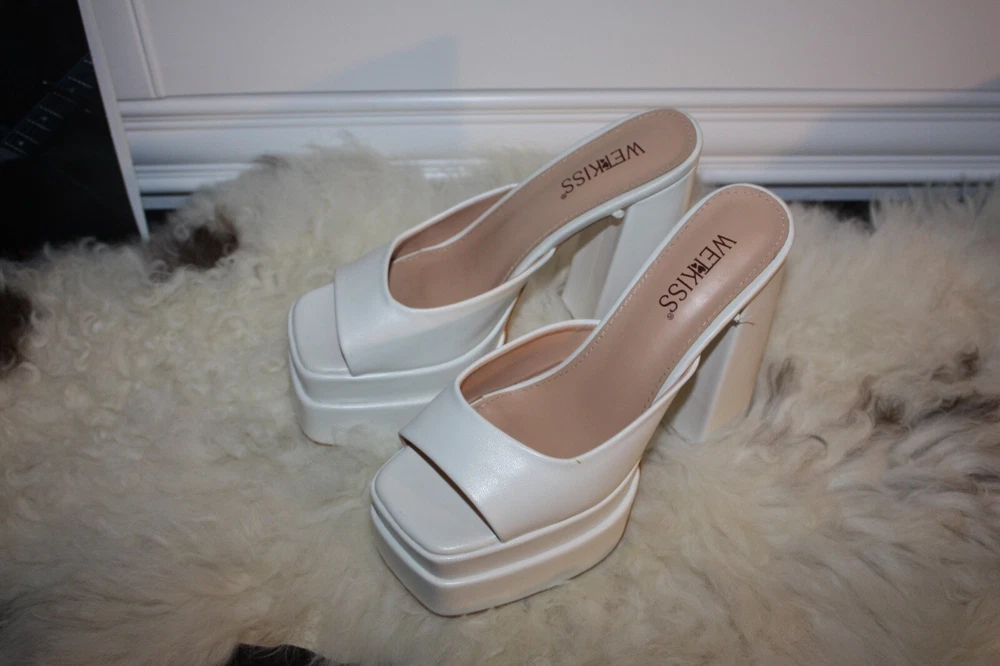 BUNDLE - 4 Pairs of Platform Heels Fits Size 8.5W (White, Pink, and 2 Black) Black Vinyl: WetKiss in size 8.5 White: WetKiss in size 8.5 Pink: No Brand in size 8.5 Matte Black: Dsevht in size 9 (fits like 8.5) ALL BARELY WORN - not in original box
