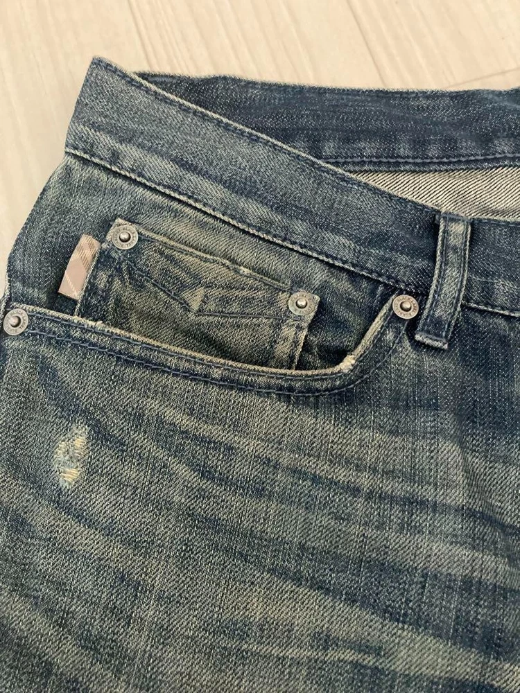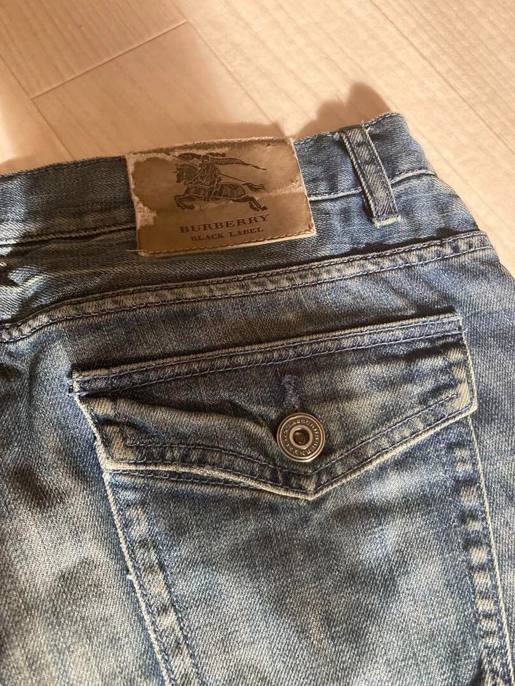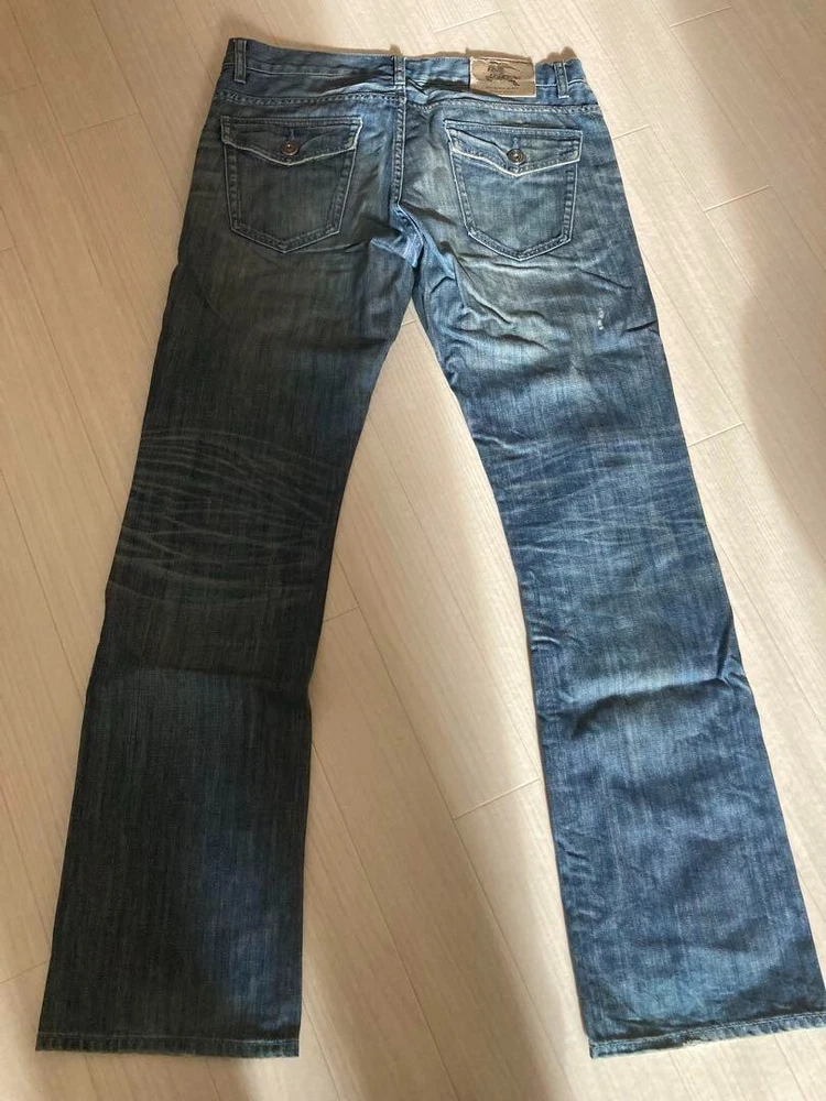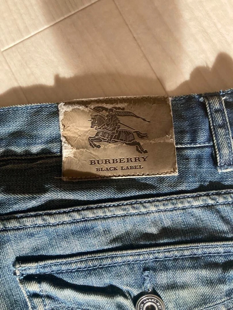 BURBERRY BLACK LABEL Damage Denim Pants Jeans Blue Straight Men Size 82 Used