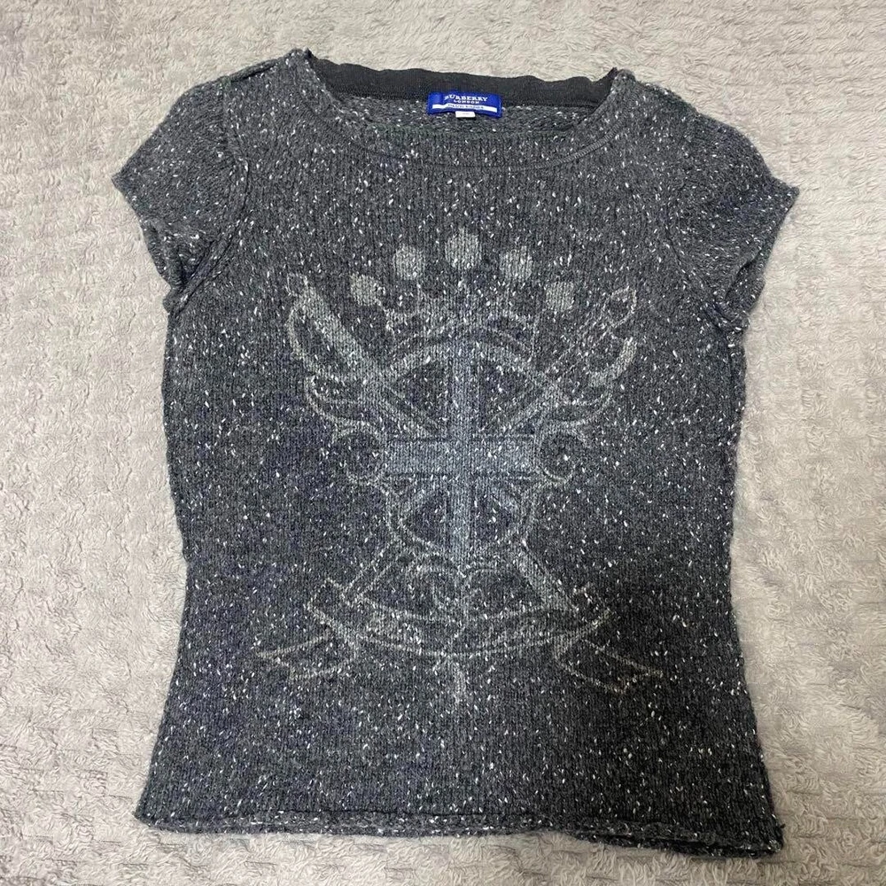 BURBERRY BLUE LABEL Short sleeve Knit Sweater Logo Wool Women Size 38/S-M Used