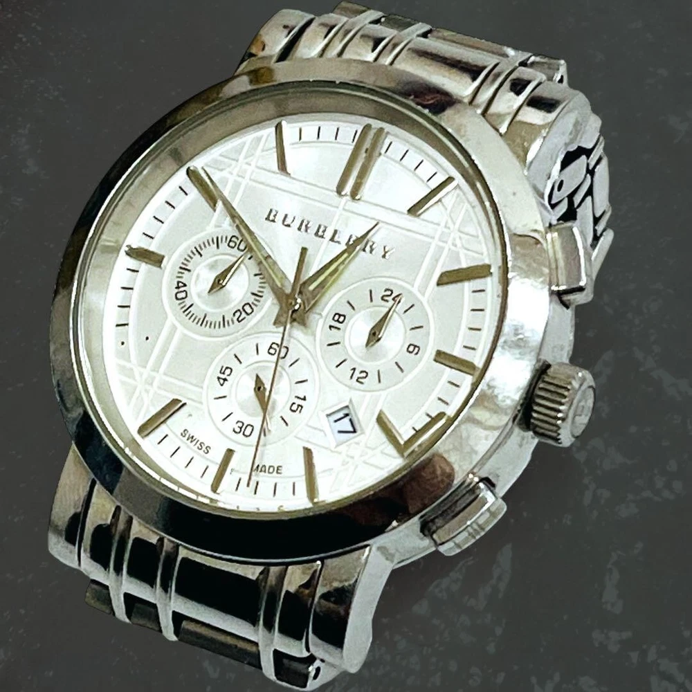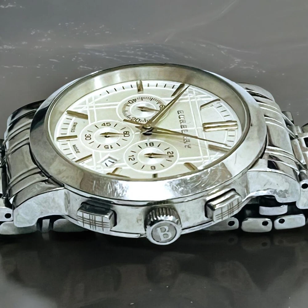 BURBERRY BU1360 Watch 40mm White Dial Chronograph Quartz Men's Vintage 202411M