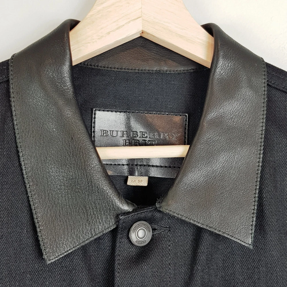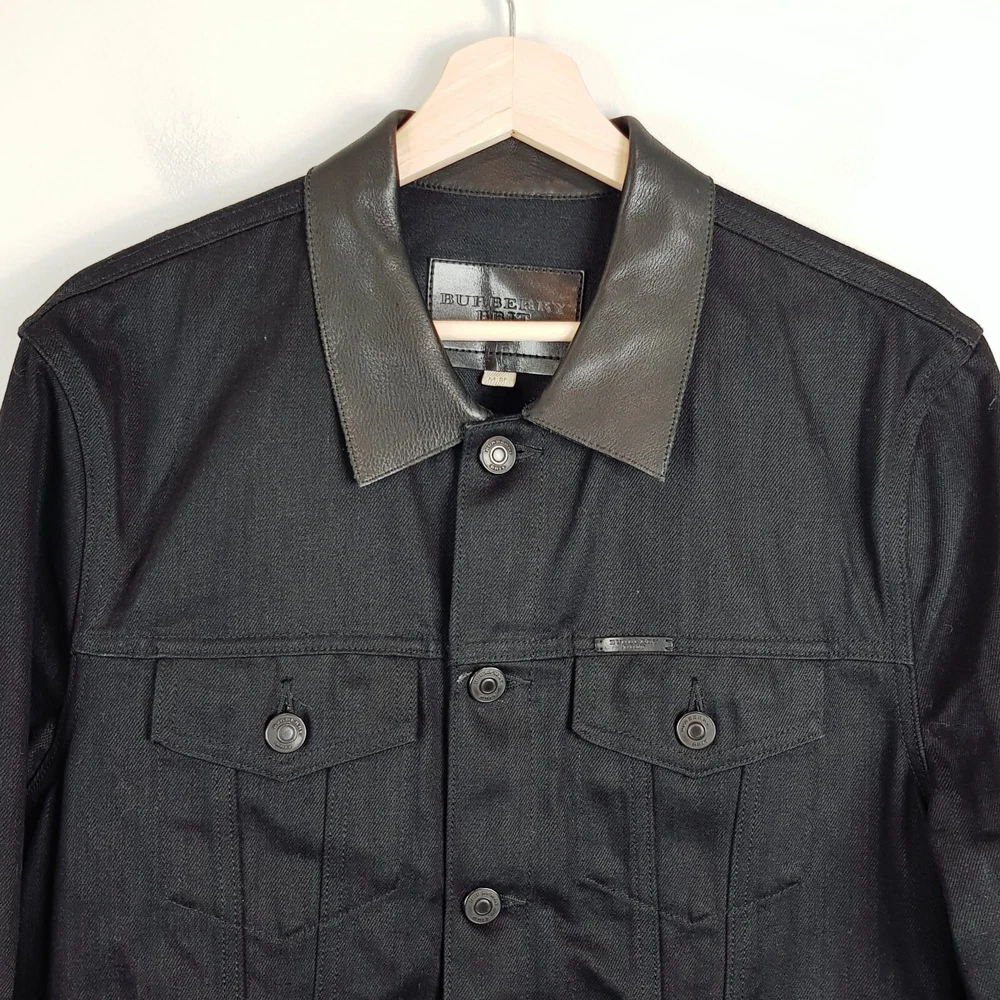 gtin13: Does not apply Fabric Type: Denim Department: Men Brand: Burberry Size Type: Regular Style: Jacket UPC: Does not apply Features: Genuine Leather Trim Type: Jacket Colour: Black Closure: Button Outer Shell Material: mixed Size: M