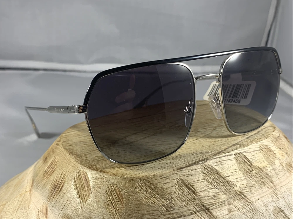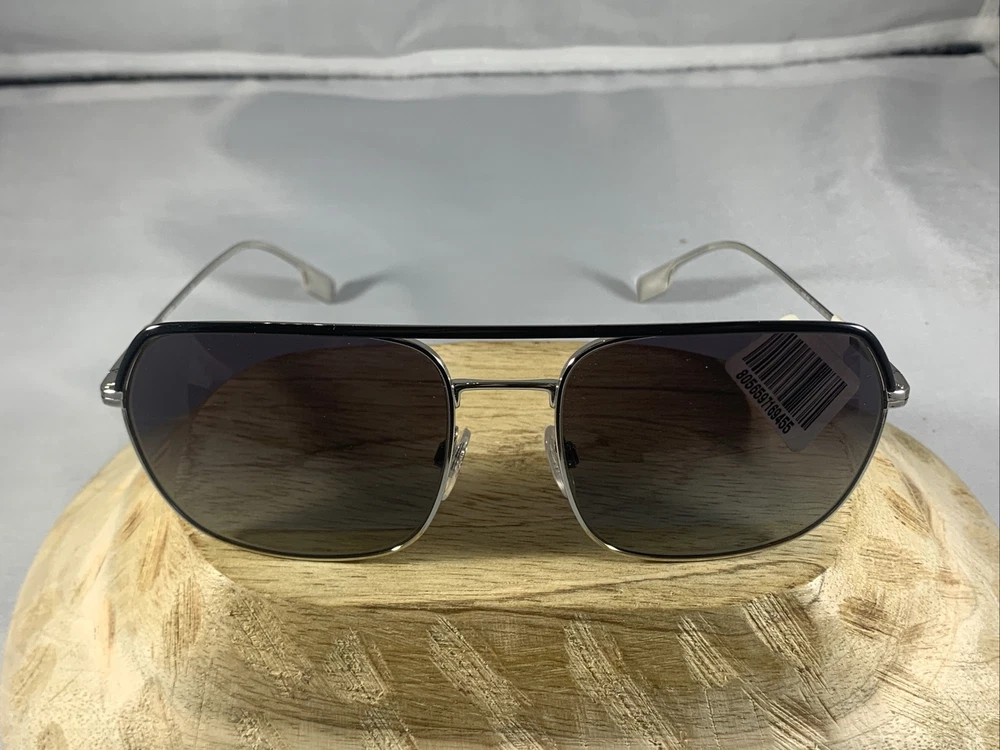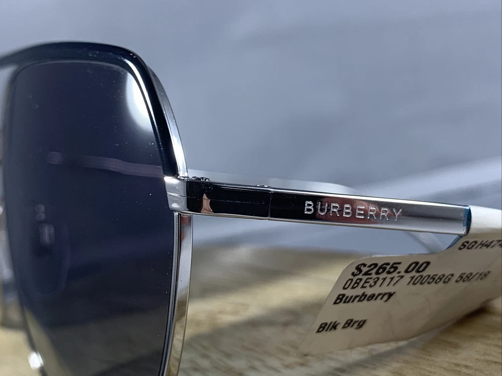 These sunglasses were used as displays in a store and were gently used. 100% Authentic as are all of my items. Appx $265.00 msrp. I would rate the lenses 9.9/10 and the frames are 10/10. The sunglasses come in a microfiber carrying bag. If you have any questions feel free to message me. The price is negotiable. These sunglasses are polarized. This item will be shipped quickly with care, please check my feedback. **SEE PICTURES - There may be a couple very minor spots on the lenses. Does not affect vision.** Size: 58-18-145 SKU: 1370 BURBERRY HOLBORN 10058G SILVER/BLACK FRAME W/GRAY GRADIENT LENSES BE3117 (1370).