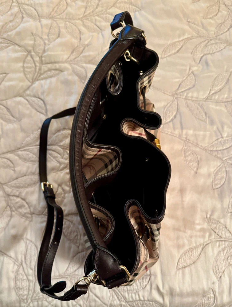 This Authentic Burberry purse is in Excellent condition and has always been stored in the Original Dust Cover. No original box. My mother is the original owner. Approximate Dimensions are 15" x 10" Free Shipping