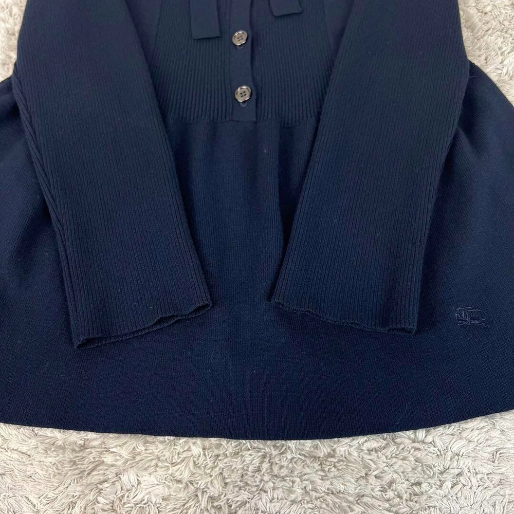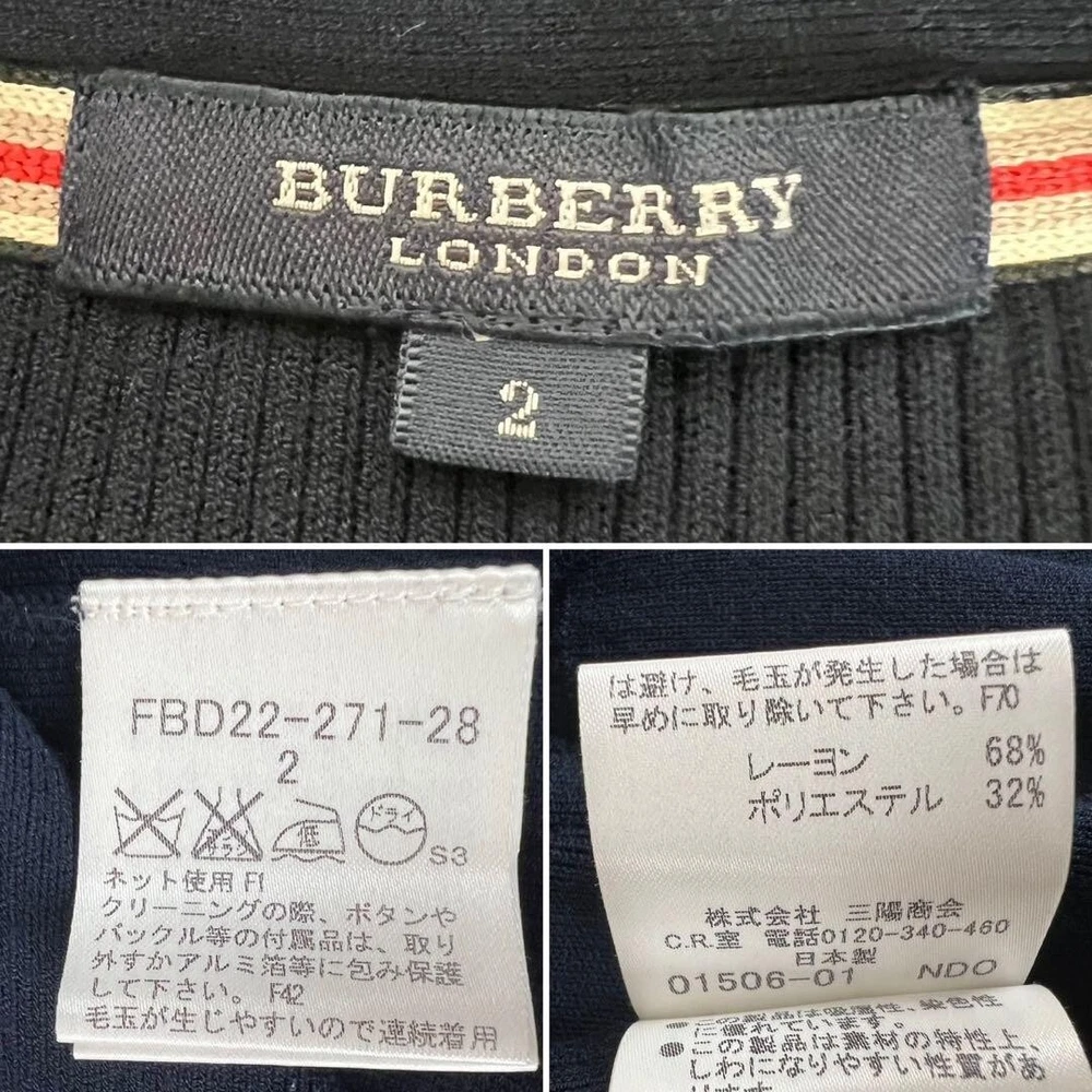 Accents: Logo Features: NA MPN: NA Style: Cardigan Brand: Burberry London Season: Fall, Spring, Winter Material: Polyester, Rayon Occasion: Business, Casual, Travel Garment Care: NA UPC: Does not apply Size: 2 Color: Blue Vintage: No gtin13: Does not apply Neckline: Crew Neck Pattern: Solid Character Family: NA Department: Women Type: Sweater Fit: Slim Fabric Type: Knit Size Type: Regular Country/Region of Manufacture: Japan Theme: NA Personalize: No Sleeve Length: Long Sleeve Sleeve Type: NA Character: NA