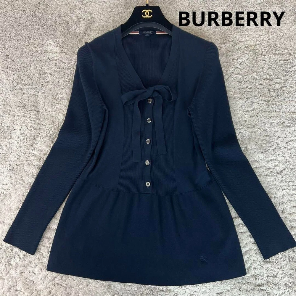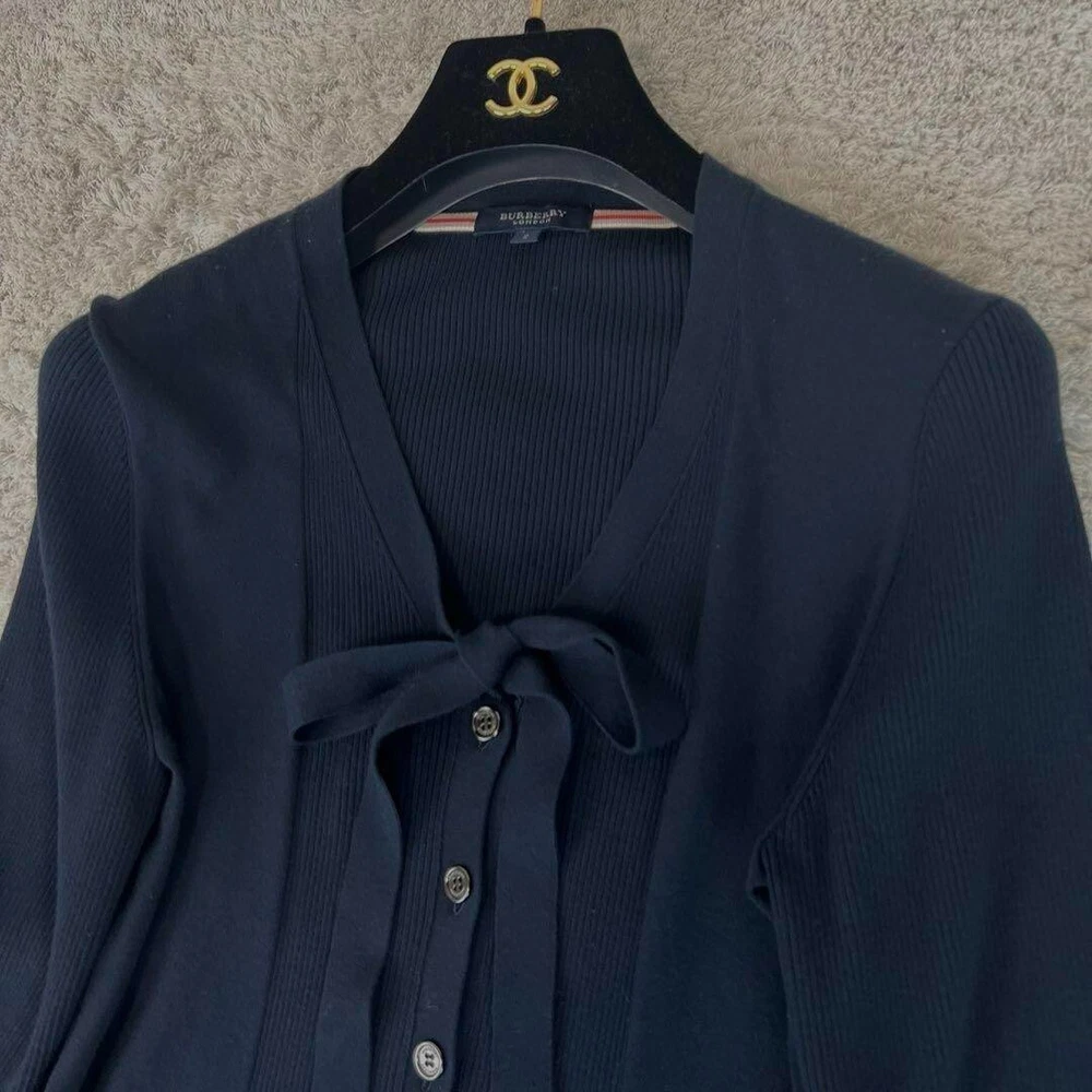 BURBERRY LONDON Cardigan Tops Knit Long Sleeve Ribbon Navy Women Size 2 Used