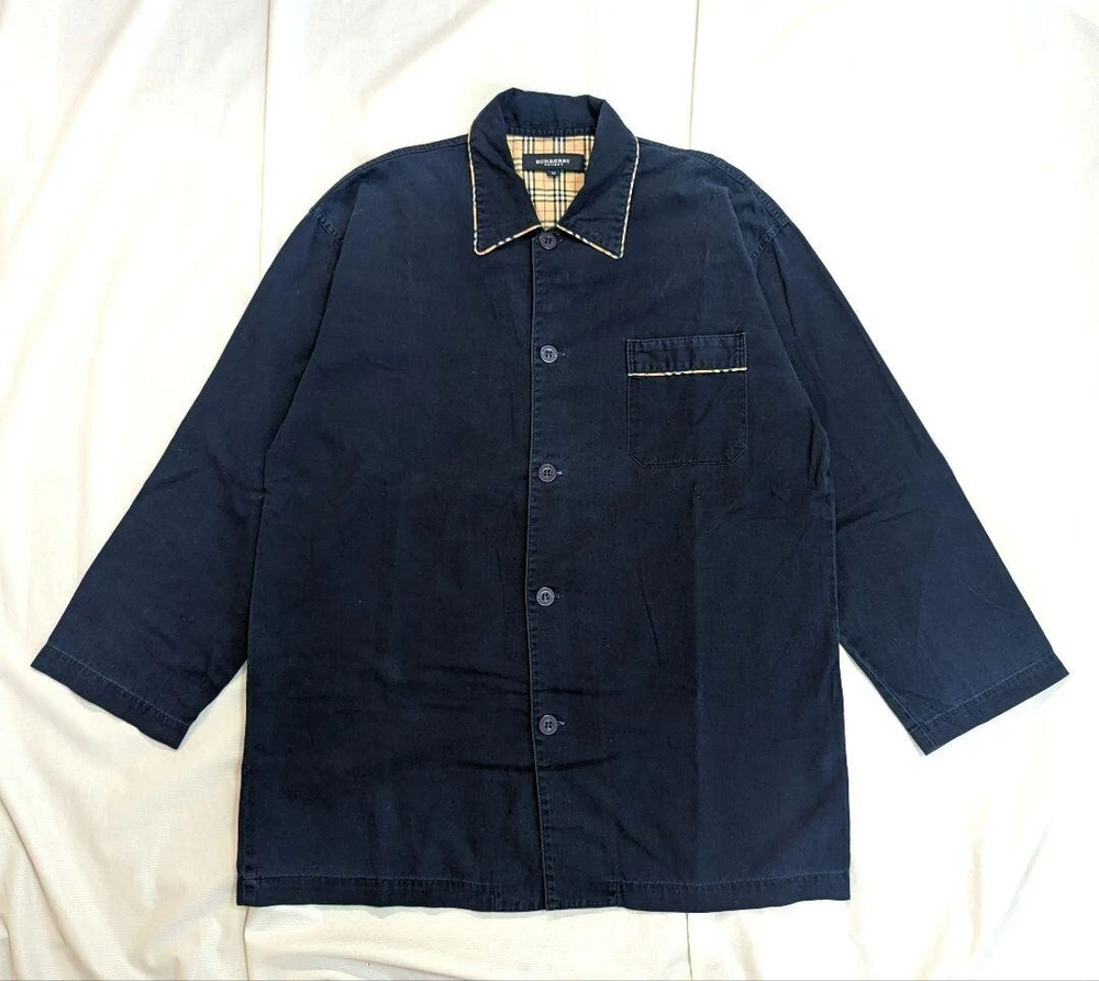 BURBERRY LONDON Nova Check Cotton Pajama Shirt Navy Sleepwear Men Size M Used