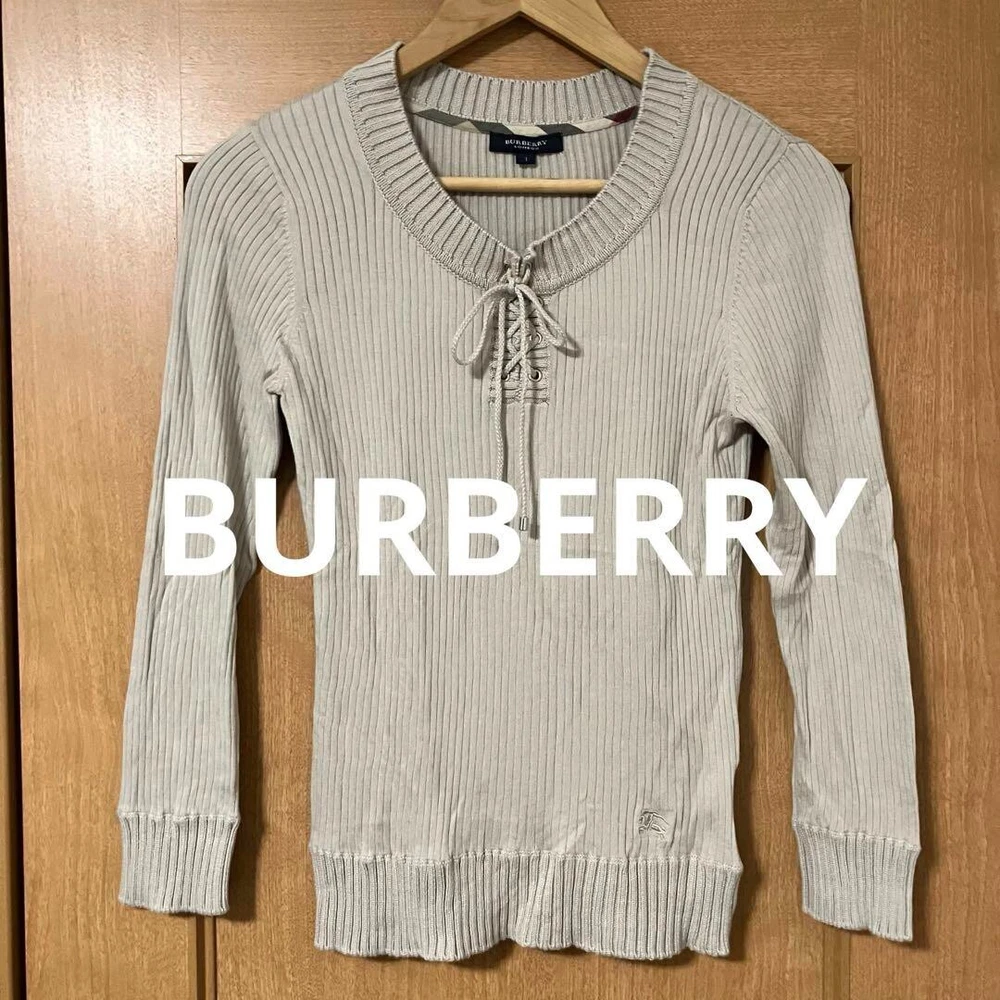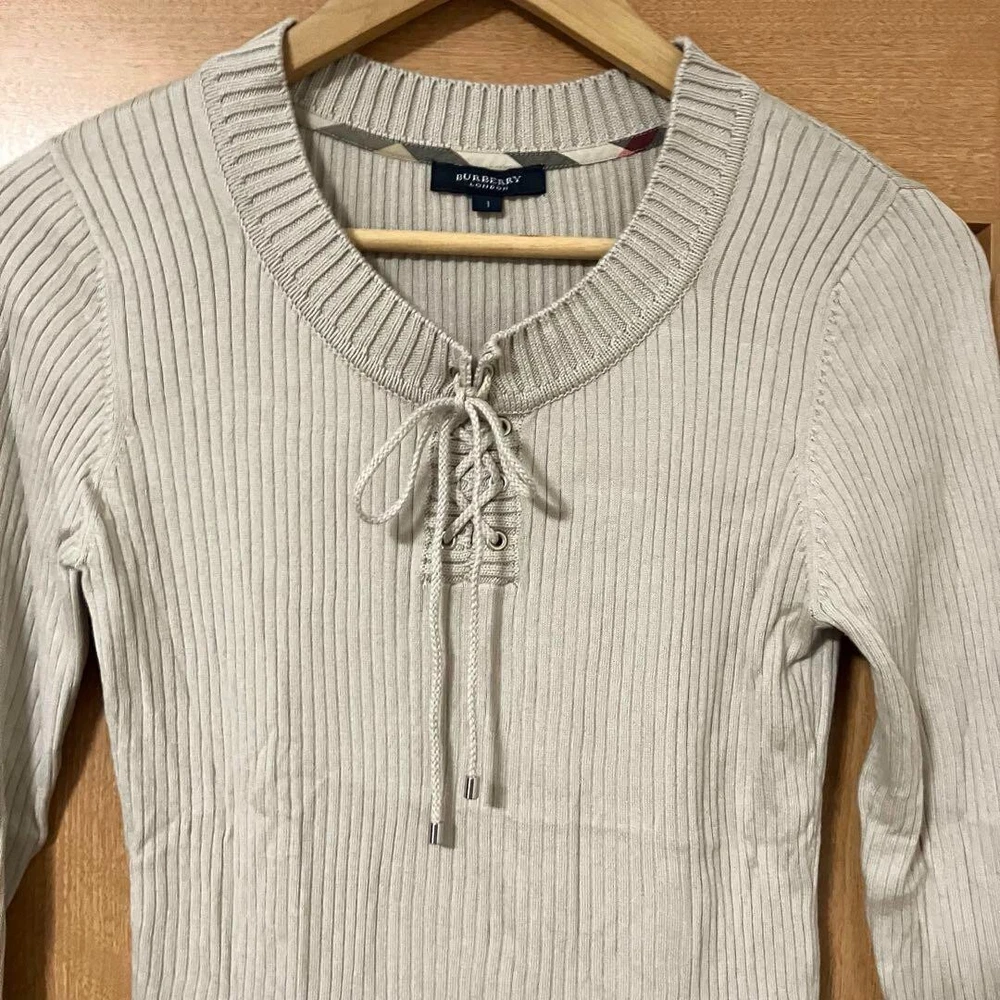 BURBERRY LONDON Ribbed Knit Sweater Long sleeve Cotton Beige Women Size 1 Used