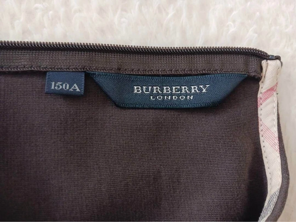 Material: Cotton gtin13: Does not apply Size: 150A MPN: NA Sleeve Length: Short Sleeve Closure: Zip Neckline: Crew Neck UPC: Does not apply Department: Girls Brand: Burberry Country/Region of Manufacture: China Style: A-Line Pattern: Solid Sleeve Type: NA Occasion: Casual, Formal Dress Length: 30.7 in Theme: NA Features: NA Garment Care: NA Character: NA Waist Size: NA Accents: Logo Color: Brown Vintage: No Handmade: No Season: Fall, Spring, Winter