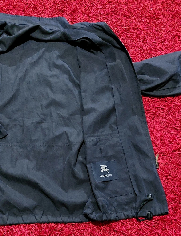 For sale is a Burberry London NavyBlue Harrington Windbreaker Jacket Sz L . (see measurements) and is in good condition as seen in the pictures. Length 75 CM Pit to Pit 63 CM Sleeves 58 CM Size : 54 M / L If you have any questions about an item just email us before purchasing. --- How long will it take before my order will be delivered? - USA & Canada: We aim to deliver your order within 5 - 8 workingdays. - East Europe: We aim to deliver your order within 2 - 5 working days.