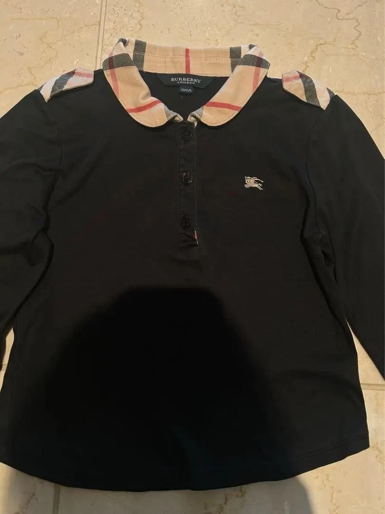 Size: 120A Material: Cotton UPC: Does not apply Fit: Slim Character Family: NA Closure: Button Department: Unisex Kids Brand: Burberry Character: NA Sleeve Length: Long Sleeve Neckline: Collared Theme: NA MPN: NA Features: NA Style: Pullover gtin13: Does not apply Color: Black Season: Fall, Spring, Winter Fabric Type: NA Performance/Activity: Walking Vintage: No Garment Care: NA Type: T-Shirt Personalize: No Occasion: Business, Casual, Travel Fabric Wash: NA Pattern: Check