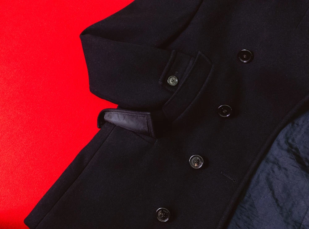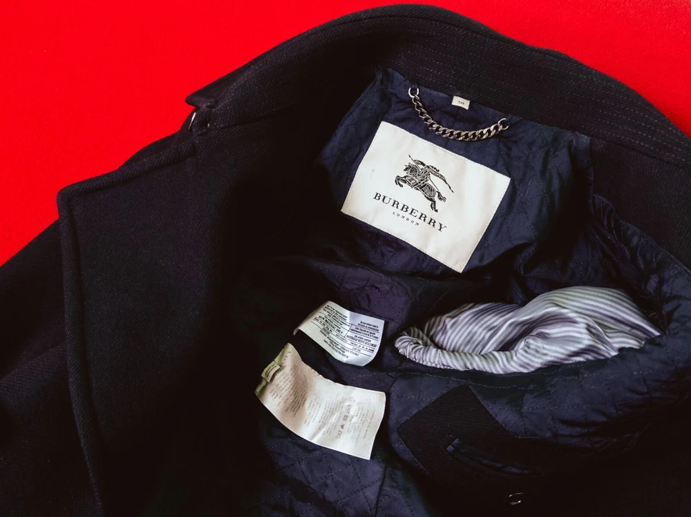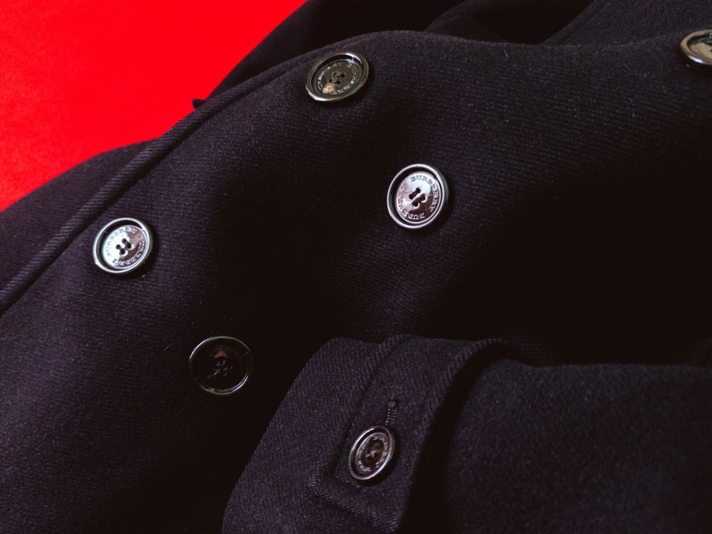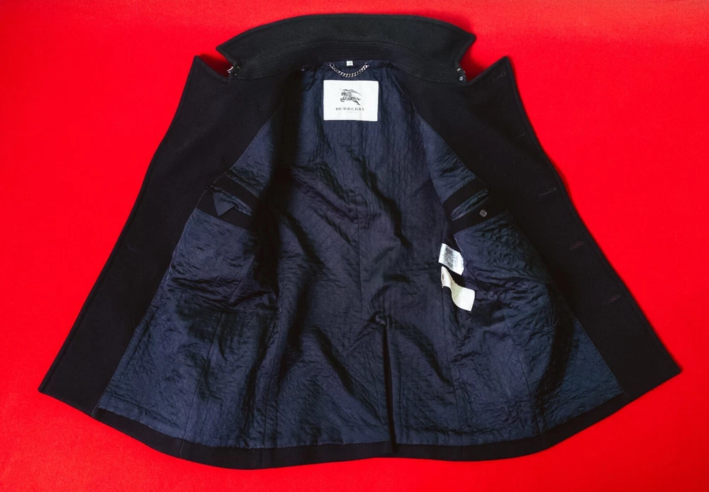 Size: 50 Jacket/Coat Length: Mid-Length Size Type: Regular Collar Style: Stand-Up Outer Shell Material: Wool Accents: Button, Logo Brand: Burberry Type: Coat Country/Region of Manufacture: Romania Vintage: No Insulation Material: Wool Style: Pea Coat Pattern: Solid Closure: Button Seller Notes: “Good Condition. Sewn Three Small Holes. Trifle And Invisible.” Performance/Activity: Hunting, Walking Occasion: Business, Casual, Formal Fit: Regular Fabric Type: Flannel Theme: City, Classic, Designer, Holiday, Italian, London, University, Elegant, Logo Product Line: Burberry London Department: Men Lining Material: Viscose Sleeve Length: Long Sleeve Features: All Seasons, Collared, Lined, Pockets Color: Black Season: Fall, Spring, Winter