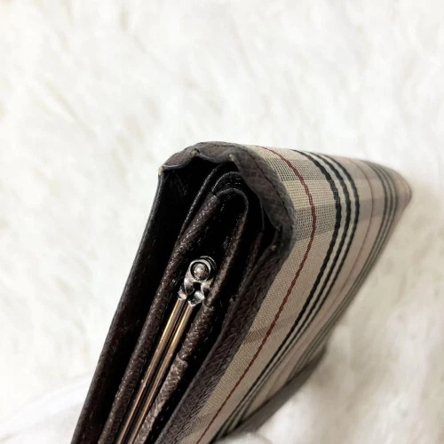 $ 107.42BURBERRY Nova Check Canvas Leather Bi-fold Long Wallet in Beige 2848