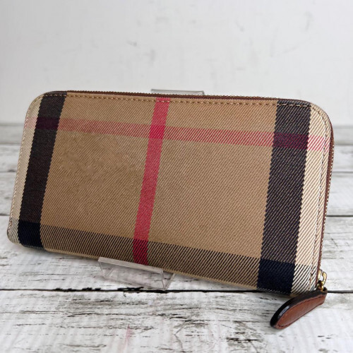$ 101.39BURBERRY Nova Check Long Zip Wallet in Red Beige with Leather Trim 2804