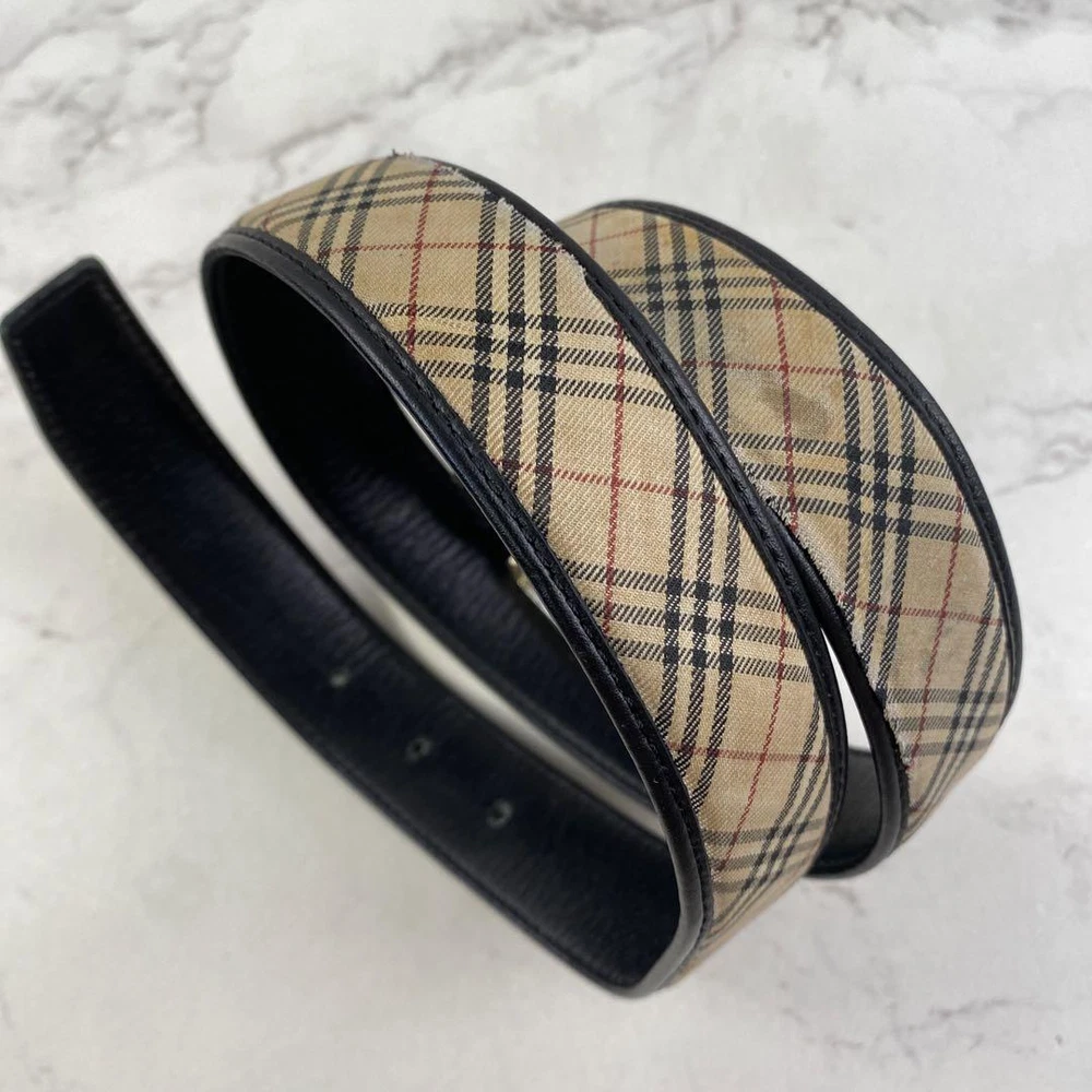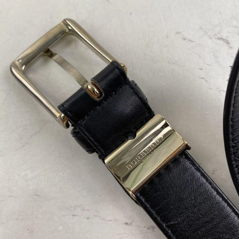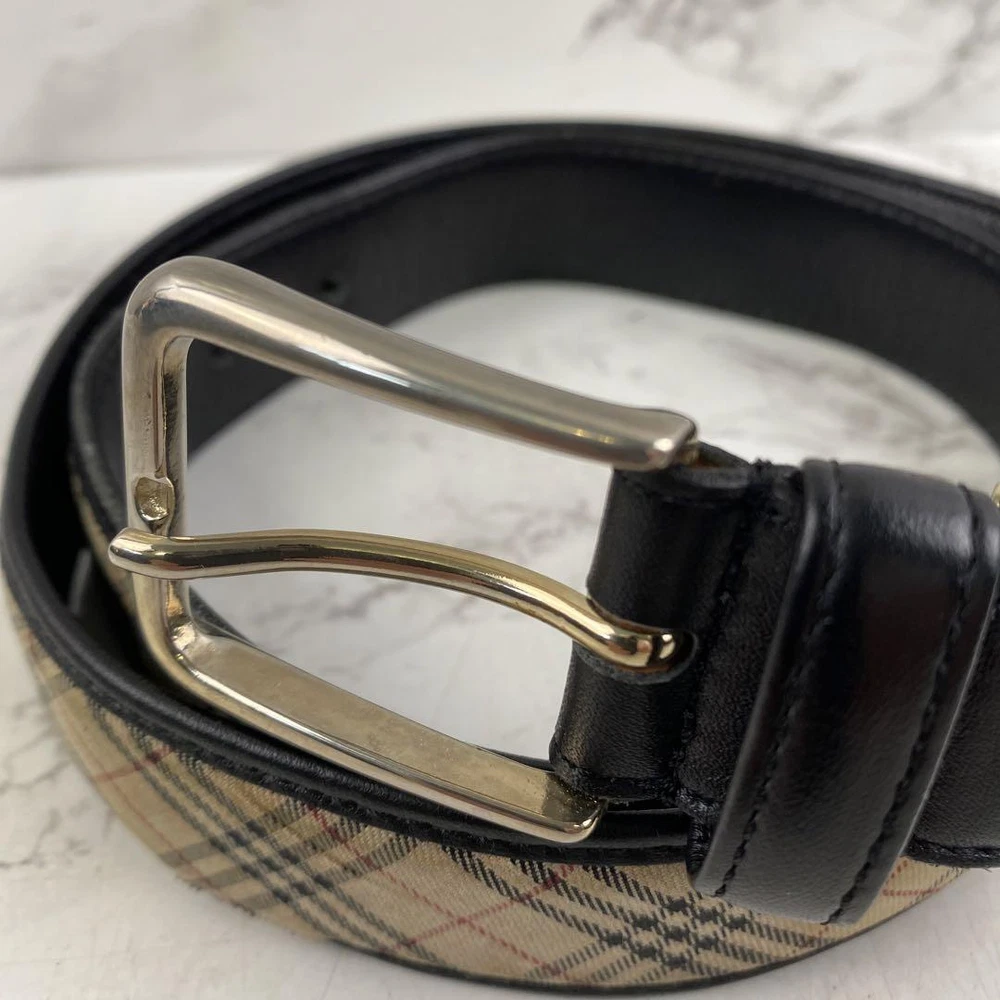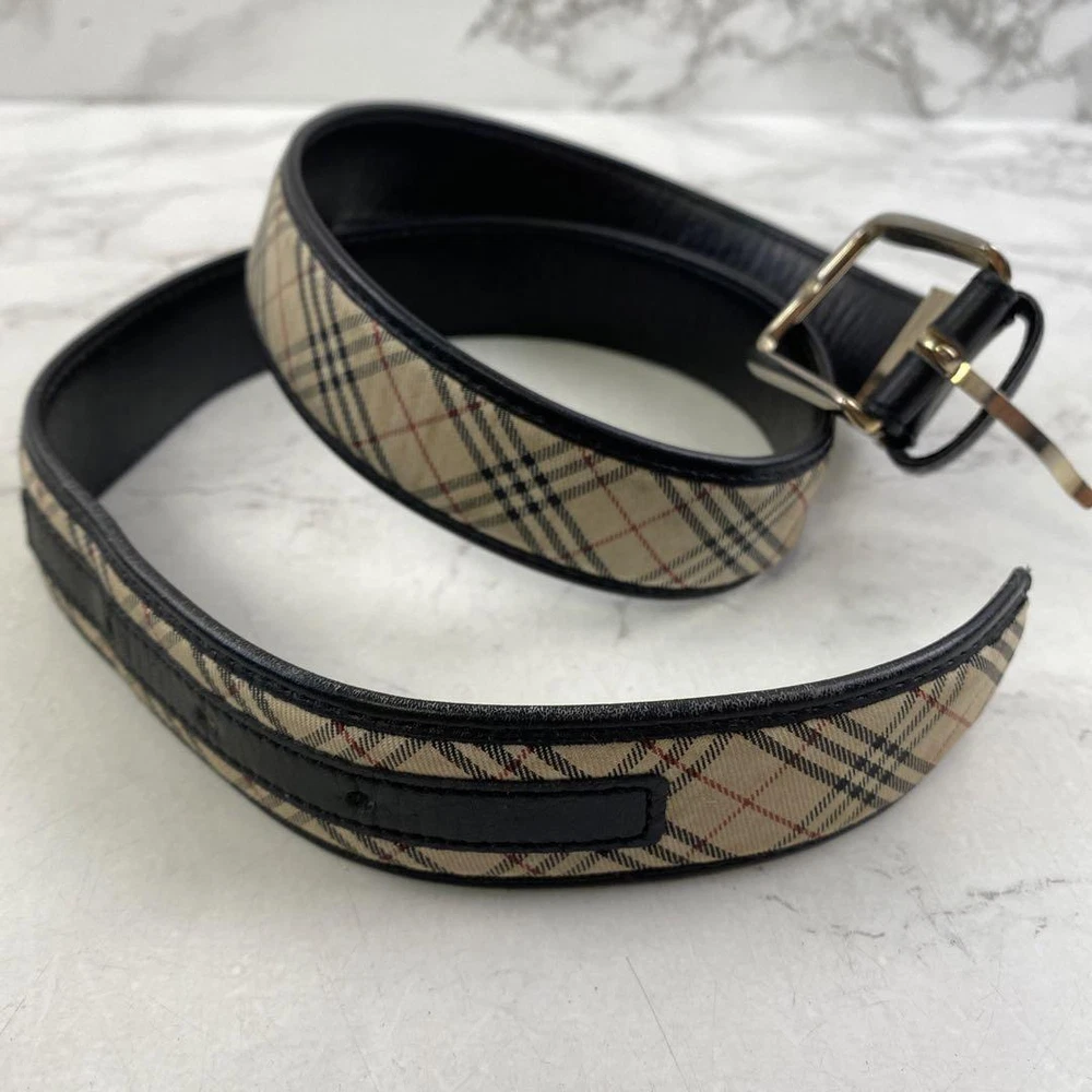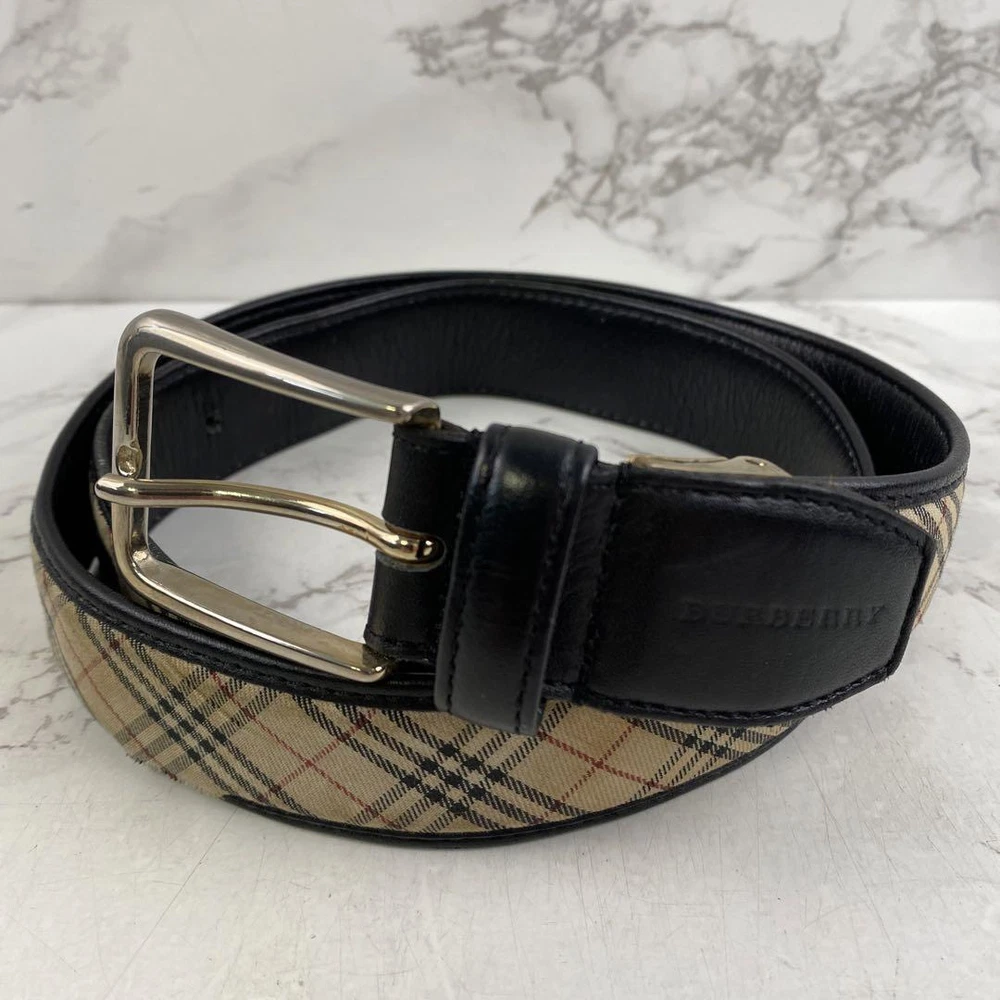 BURBERRY Nova Check Genuine Cowhide Leather Belt Used Excellent+ Auth Description **Product Details:** - **Color**: Black - **Condition**: Shows signs of use, with light stains visible in the photos. - **Measurements**: - Waist Size: Approx. 50 cm (19.7 inches) - Total Length: Approx. 98 cm (38.6 inches) - Width: Approx. 3 cm (1.2 inches) - **Additional Notes**: - Features three belt holes. **Description**: This black belt offers a sleek and minimalist design, suitable for various outfits. Despite minor signs of wear, it remains functional and stylish for daily use. All of Items Will be Shipped From Japan. Please check with the image. About the condition Damages such as stains, scuffs, and scratches are listed only if they are noticeable. Please understand that this is a used item, so there may be some inconspicuous scuffs or signs of use even if they are not listed. Please note that there may be unnoticeable scuffs and scratches on the item even if they are not listed. Please check the images for details of the condition. Note: This is a used item. We have tried to describe the condition of the item with detailed pictures and text as much as possible, but please understand that there may be some things that we have overlooked because it is a used item. Please note that measurements are taken by our company, so please understand that there may be some errors. If there is no special description about the accessories, only this item will be included. Colors may look different from the actual item depending on your monitor and shooting environment. Payment Please pay within 7 days of first purchase. ebay payments We can not separate invoice. Please understand. Shipping&Handling ■Speedy Shipping Shipped by DHL, FedEx, or Japan Post with tracking number. *If your location is designated as remote, additional shipping charges may apply. (Some areas such as Australia, Canada, Chile, and remote areas of the U.S.) I will pack it carefully. ■Economy Shipping (Japan Post) Economy Airmail 15-40 days without tracking Additional shipping fees may apply for countries/areas where delivery by Japan Post is not available. Handling Time Please check the categories of Shipping and payments. International Buyers - Please Note: Import duties, taxes, and charges are not included in the item price or shipping cost. These charges are the buyer's responsibility. Please check with your country's customs office to determine what these additional costs will be prior to bidding or buying. If you have any questions about products, shipping, etc., please do not hesitate to contact us by message. Thank you for your understanding.