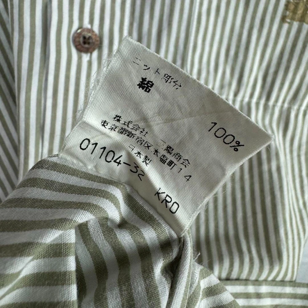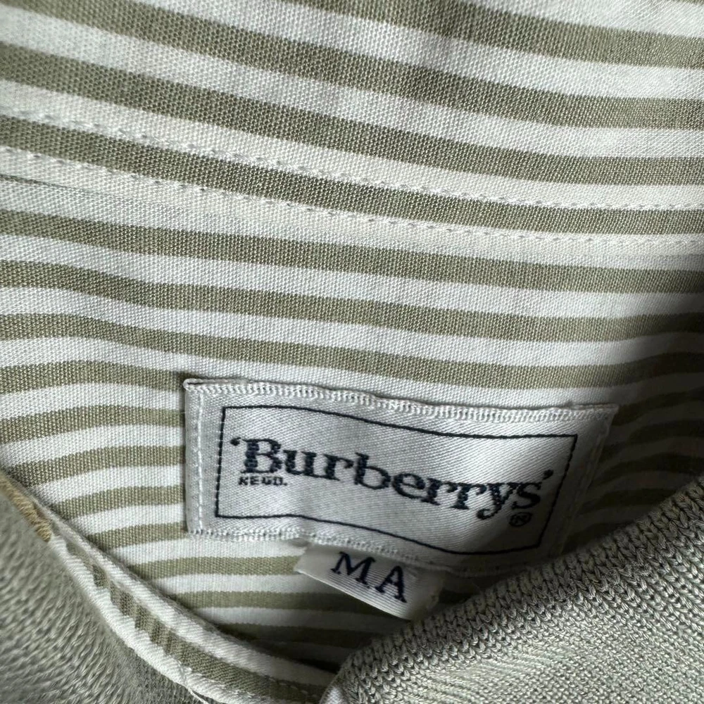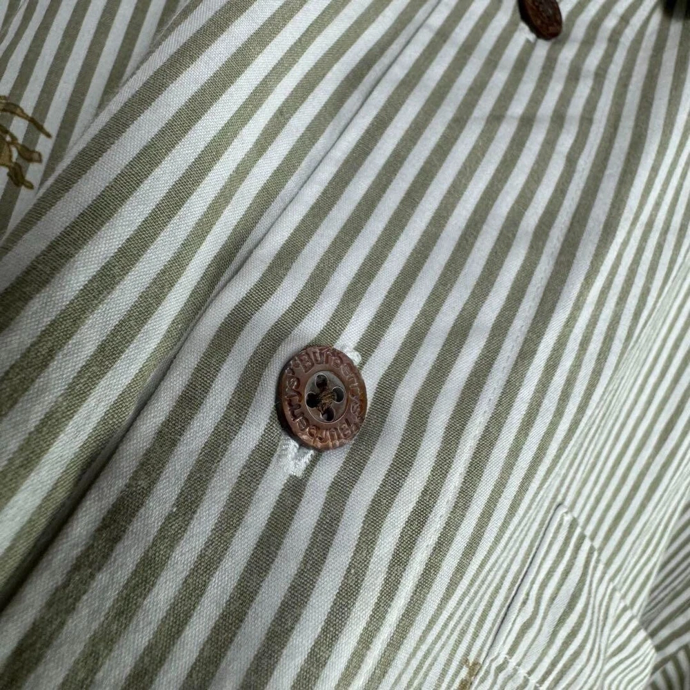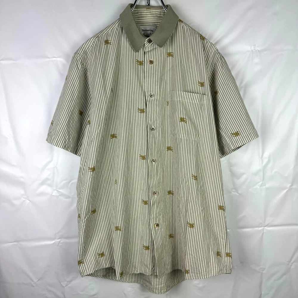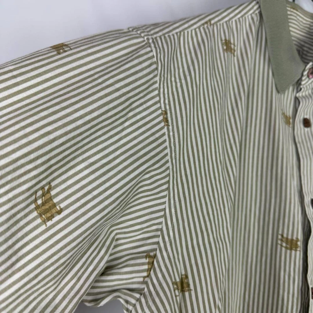 BURBERRYS Short sleeve Shirt Striped Horse Logo Green Cotton Men Size MA Used