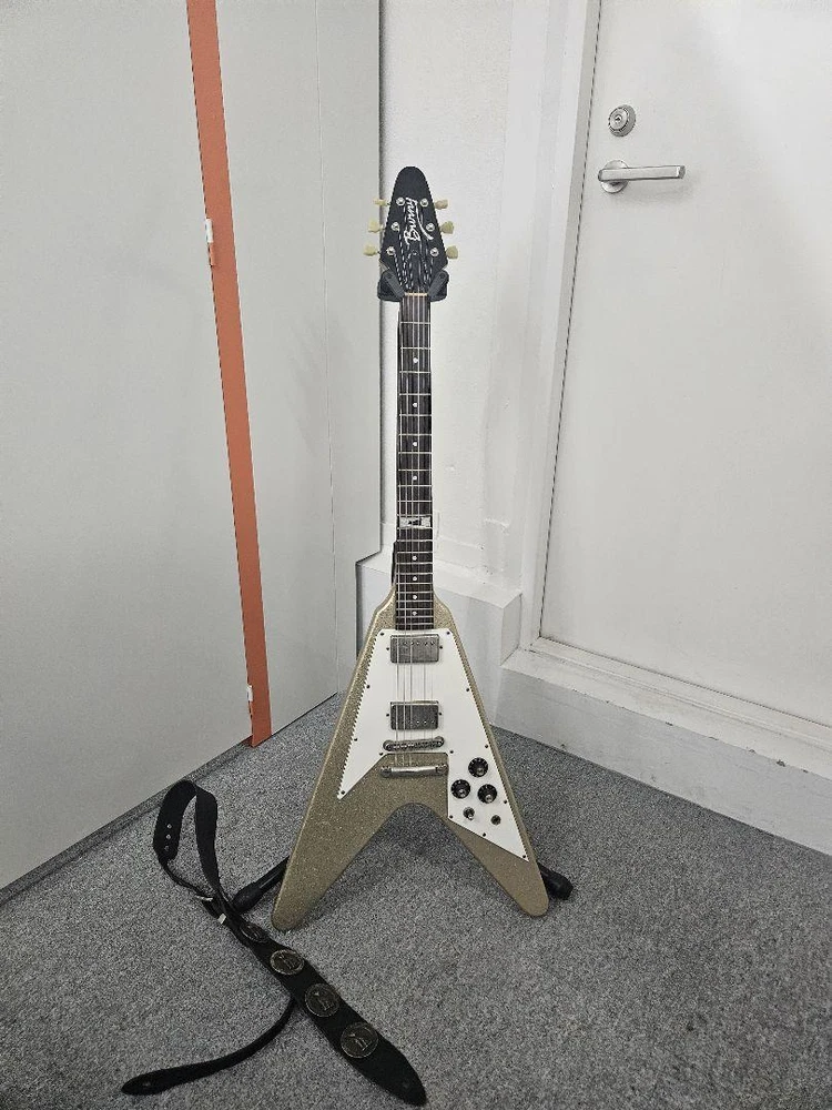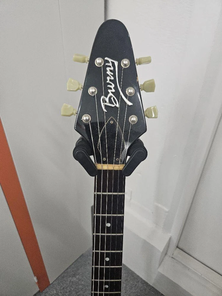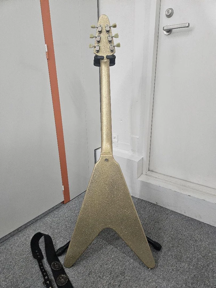 【Notice】 ※You cannot cancel an order after it has been placed and before it has been shiped. (Recently, there have been many cancellations after ordering.Please coisider carefully before purchasing.) ---------------------------------------------------------------------------------------------- 【Item Description】 Extremely rare! Fernandes BURNY LV-115KK and ken model strap set. For L'Arc-en-Ciel fans, this is a very rare guitar that you've been looking for. It's a guitar that you might find one of a year even in the used market. Thank you for your consideration! The mahogany body and mahogany neck, with a classic V shape like the Gibson 68 type, gives it a vintage feel like the original Flying V, and its mature rock sound is attractive. It has the best specs and build quality among the Burny brand. There are slight scratches, small dents, and some fading, but considering its age, the damage is minimal, and it looks relatively clean, including the color. The body has a nice aged look and is cool. The original tuners were worn out and the tuning was unstable, so I replaced them with Global locking tuners. L'Arc~en~Ciel ken model guitar Manufacturer: FERNANDES Brand: BURNY Product Name: Flying V Electric Guitar Part Number: LV-115KK It's in good working order. Front and rear pickups are working properly. Tone and volume controls are fine, no noticeable scratchiness. I adjusted the string height. I was able to set it very low, making fast playing easy. The frets and fingerboard were polished with orange oil. The body has been waxed. It has a very clear sound. I think it's a great sound quality. It comes with the original case. The case handle is slightly frayed, but it's not a problem. Thank you for your consideration. ----------------------------------------------------------------------------------------------- 【Shipping】 Fedex priory (Free shipping, of course) ※Currently, economy service is not available. ※An additional shipping fee of 150 USD is required only for Australia. ※For Australia, we may use DHL. ※EMS is not available. 【Import Duties】 Import duties, taxes and charges are not included in the item price.These charges are buyer's responsibility. Please check with customs for these addtional costs before bidding or purchasing. Even if you ask us about Import duties, we cannot give you an exact amount.
