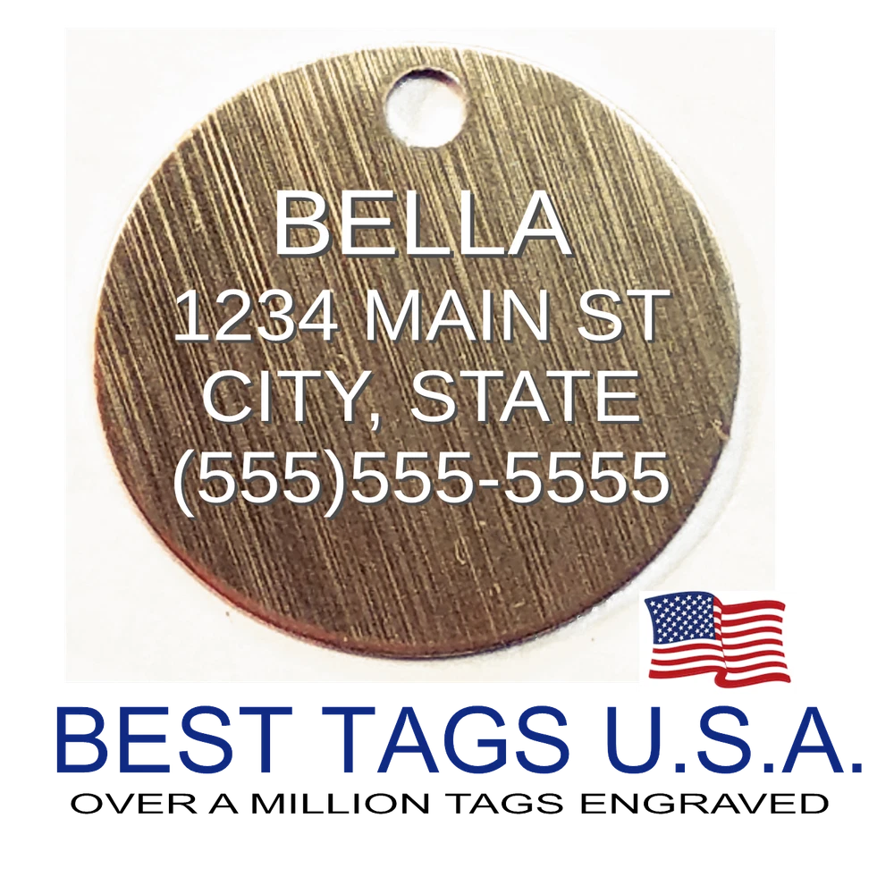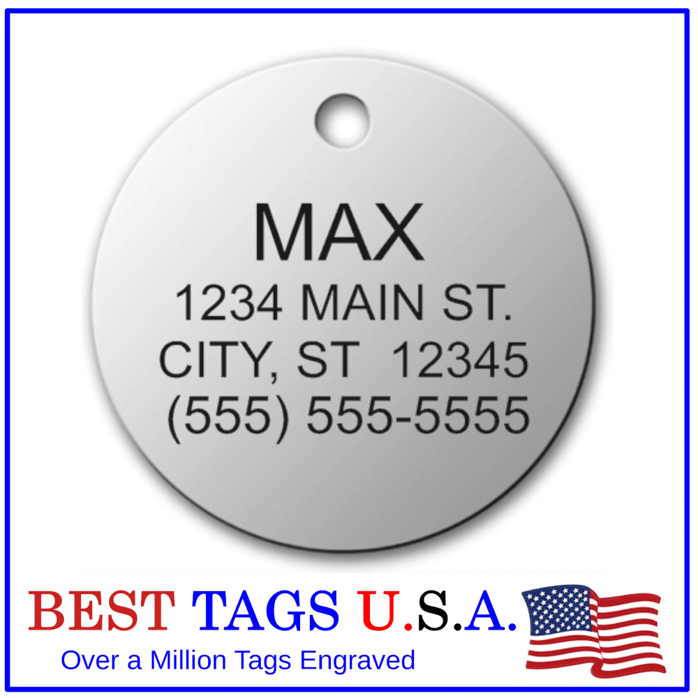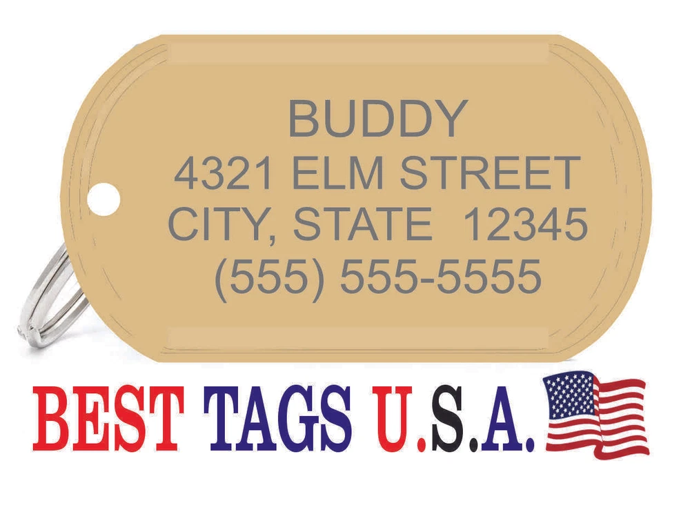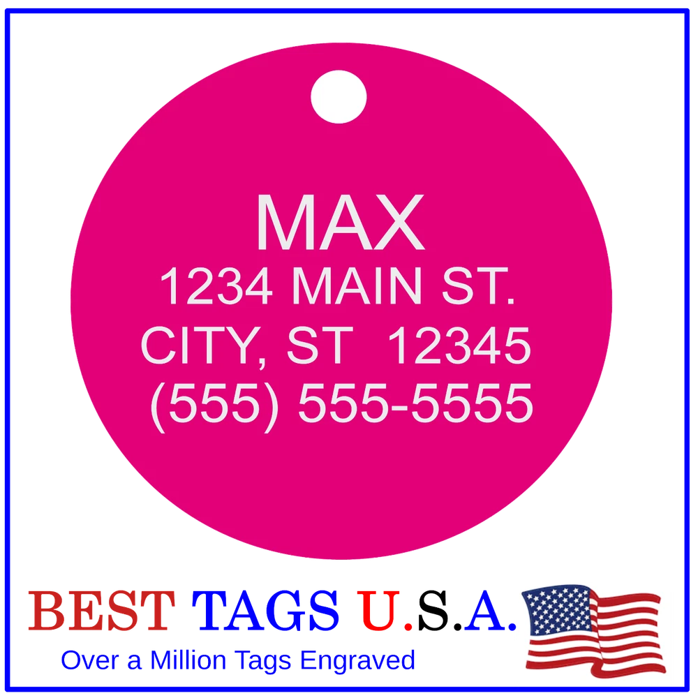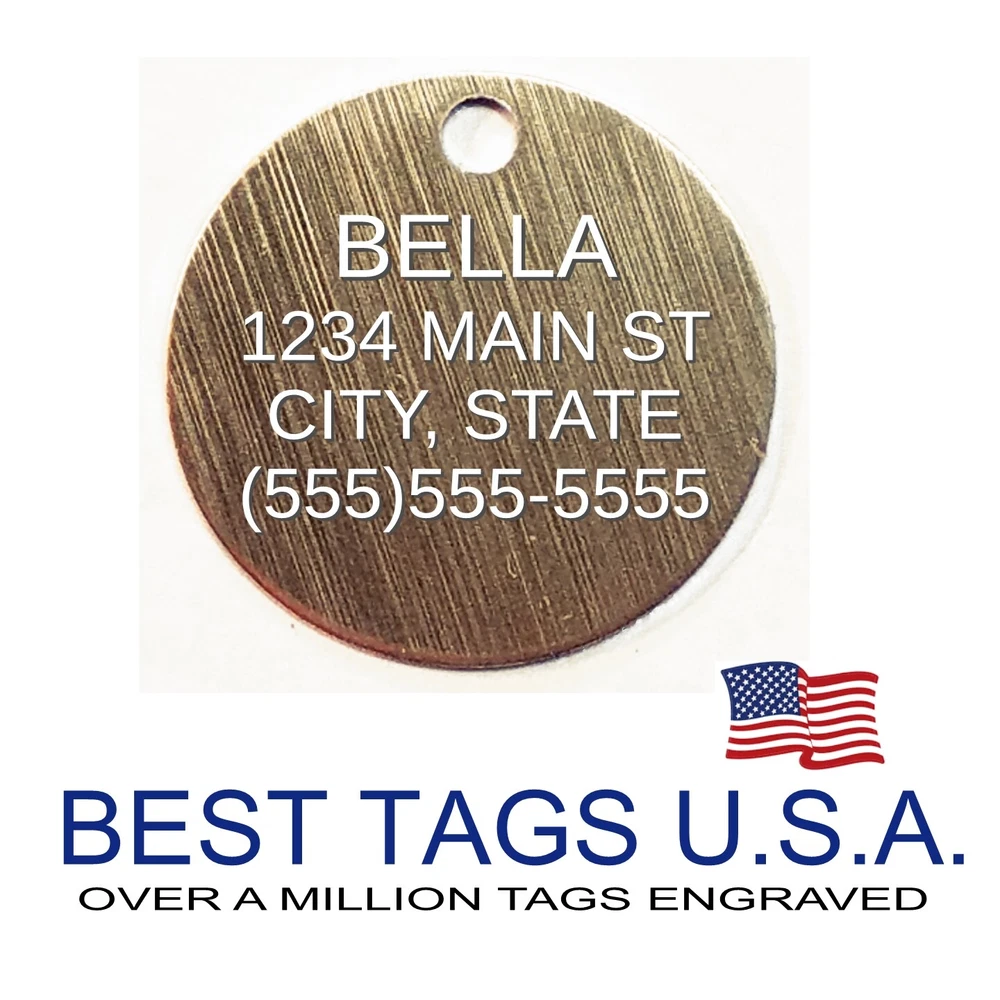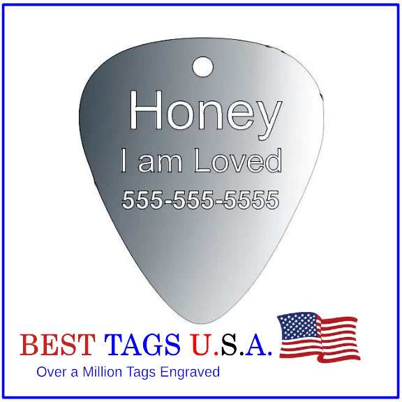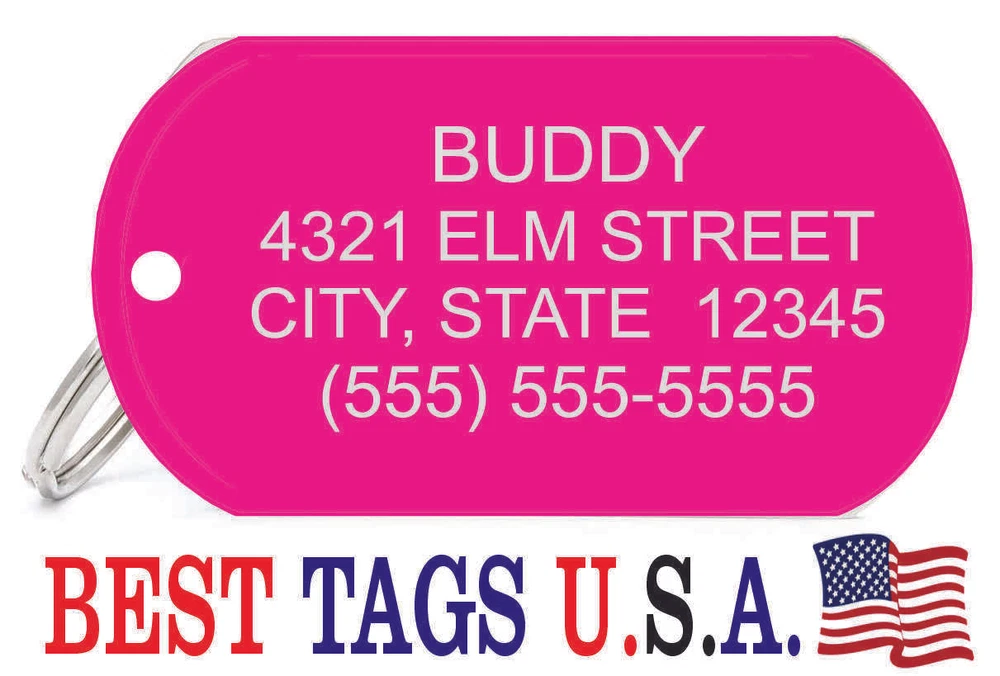BEST TAGS PERSONALIZED- ENGRAVED WITH REFLECTIVE SAFETY TEXT M A D E I N U. S. A. >>>WE SHIP USPS WITH TRACKING<<< NOTE: Tags are engraved and shipped Friday of each week. Handling time will vary from 1 to 7 days, depending on what day you order. YOUR CHOICE OF: MILITARY DOG TAG (2" x 1.1") 1" Diameter Small CIRCLE 1.5" Diameter Large CIRCLE GUITAR PICK (Standard guitar pick size) 1" HEART ALL TAGS INCLUDE A KEY RING UP TO 5-Lines of Text Engraved per side on Military & 1.5" Circles, 4-Lines on Guitar picks & 1" Circles, 3-Lines on Hearts 2-SIDED TAGS available in drop-down menu if you want engraving on both sides. DEEP DIAMOND ENGRAVED - THE BEST! -LONG LASTING- WON'T RUB OFF LIKE CHEAP LASER ENGRAVING OR INK STAMP =YOU CAN "FEEL" OUR ENGRAVING= TAGS ARE MADE OF LIGHT-WEIGHT DURABLE Anodized Aluminum HOW TO ORDER: 1. Above please select TAG , C O L O R and QUANTITY 2. ENTER your personalization text in the grey box above -OR- You can enter your engraving info at checkout in the Message to Seller BOX. please be sure to CLICK " Message to Seller" -- Or -- Use eBay " Contact Member/Seller " and send the tag information to us ( best_tags) Please read the tag parameters below: ( spaces count as characters ) Less is more on tags. Less Text = LARGER TEXT . 2-SIDED TAGS available in drop-down Please specify your engraving for FRONT and BACK sides, otherwise we will engrave the same info on both sides. Military Style Dog Tag: up to 5 Lines, 24 characters maximum per line Large 1.5” Circle: up to 5 lines, 20 characters maximum per line Small 1” circle: up to 4 lines, 16 characters maximum per line Guitar Pick: up to 4 lines, 14 characters maximum on LINES 1 & 2, (12) on LINES 3 & 4. Heart: up to 3 lines, 14 characters maximum per line Please check for accuracy *We engrave exactly how you enter your text. *Sometimes we need to make layout adjustments to make your tag look its BEST and will contact you if it's a big change. If you don't want engraving enter "blank" 3. Click "Buy It Now" and proceed to check out. 4. At the CHECK OUT Screen *Review items and engraving info If you have a problem at checkout DO NOT CANCEL YOUR ORDER . Please message us directly. We are always on the lookout and i f we don't receive your engraving information, we will contact you. If you have ANY problem during your transaction, Please don't open a case until you message us directly and give us a chance to resolve it. We will take care of it. Your satisfaction is VERY important to us. ***We offer DISCOUNTS on Larger QUANTITY orders. Contact us for the BEST PRICE Tags are deep engraved which means that our engraving machine cuts into metal for a tag that will last. The color of the engraving is reflective silver or metal. Engraving on chrome and gold tags tends to be inconspicuous (blends into the tag more) The text on engraved tags can appear black, white, grey or silver in different lighting. We do not engrave emoji's or special characters. Thank You For Supporting American Manufacturing We really appreciate your business! C ustom Pet Tags, Military Dog Tag, Personalized Dog ID Tags Aluminum Dog Tags & Charms, Dog ID Tags, Engraved ID Tags, Pet Tags with Engraving, Pet Tags Dog Tags, Cat Tags, Cat ID Tag, Dog Tags and Charms, Pet Tags Dog Supplies, Cat supplies, Pet supplies, Blank Dog Tag, Blank Pet Tag, Blank Cat Tag, cat tags personalized, name tag, name tags, name bade, custom engraved, custom engraving
