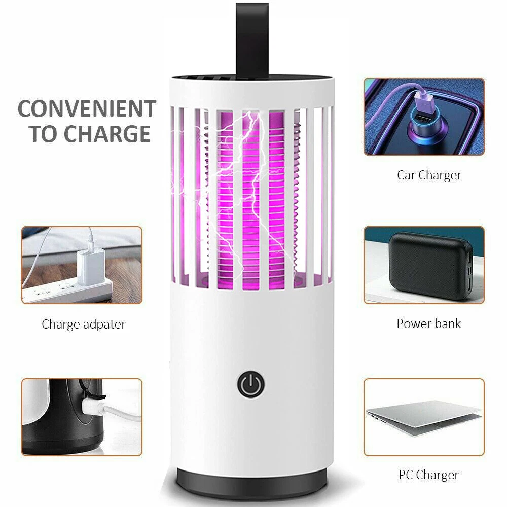 Rechargeable UPG RADE BUG ZAPPER FOR INDOOR & OUTDOOR Chemical free electric fly zapper - our UV light mo squito killer doesn’t release any bad smell, dangerous fumes, or lethal substances into your living environment., humane, effective, and can be used around kids and pets. Quiet& soft light - The Mosquito Traps lamp works very quietly with UV light which is soft, not too bright. The electronic mosquito killer use a high-effective ultraviolet light to attract mosquitoes, flies and gnat, then the flying insects are trapped and electrocuted by the electrically charged metal grids. Decorative stylish piece - It can be used as a night light and it can also repel mosquitoes. easily place in your home, kitchen or office as a decorative, stylish piece. Apply to - It can be used at home, balcony, courtyard, garden, etc. The plastic top and sh ell make it durable even when working outdoors Engineered for easy-clean ing - Bug zappers and trap the bug remains in an easy - clean vent design . To clean it up, just simply twist the bottom tray and clean it up with a brush or flush with warm water. The easy to use indoor bug zapper and mosquito lamp for home and when you're on the go. EAS Y TO USE & CLEAN UP Simply place it on a flat place, or h ang it on a tree or house wall bracket. Plug it in and wait. F or better r es ults, please put your fly traps in areas where flying insects are frequent activity. Super e asy cleaning! Insect debris is collected into the bottom tray of this mosq uit o zapper, all y ou need to do is just throwing away the debris and clean the tray (brush included). Tips: Ple ase clean the bug zapper every week and use it after drying. Prod uct features and usage scenarios ①Mosquito elimination with harmless and physical control ②Suitable for field camping ③Great for outdoor and indoor u se. ④Suitable for courtyards, backyards, bed rooms, kitchens, living rooms, etc. Specifications: Material: ABS Color: White Type: USB Charging + Rechargeable Input: DC 5V 1A Power: 5W Applicable Area: 20-80㎡ Light Wavelength: 365nm Rechargeable Type Built-in Battery: 1 * 3.7V 2000mAh Lithium Battery Item Size: 4.8in x 3.4in x 2.3in Item Weight: 165g Package List: 1xBug Zapper 1xUser Manual 1xBrush 1xUSB Charging Cable Lightweight, s olid quality, easy to hang and a ttractive design, perfect for camping, fishing, bedroom, kitchen, indoor and outdoor use. No chemicals, noiseless, li ving you a comfortable sleep e nvironm ent, protect your family from flying pest and biting insects. Payment: We Ship to Payment ADDRESS ONLY. So please confirm shipping Address prior to your payment. Shipment: 1.Need 1 business day for Handing & Packing.(Orders will be shipped out within 1 business day) 2.All items will be delivered within 2-7 days by USPS.(Shipping from Rowland Heights California, US.) Feedback: 1.Your feedback is very important to us. Before leaving any Negative or Neutral feedback, pleas e give us the opportunity t o resolve the issue. 2.If you are dissatisfied for any reason, your can Contact us directly by ebay message,We work hard to m ake sure EVERY CUSTOMER 100% SATISFIED and resolve any problem for y ou. Thanks so much for ur visit~