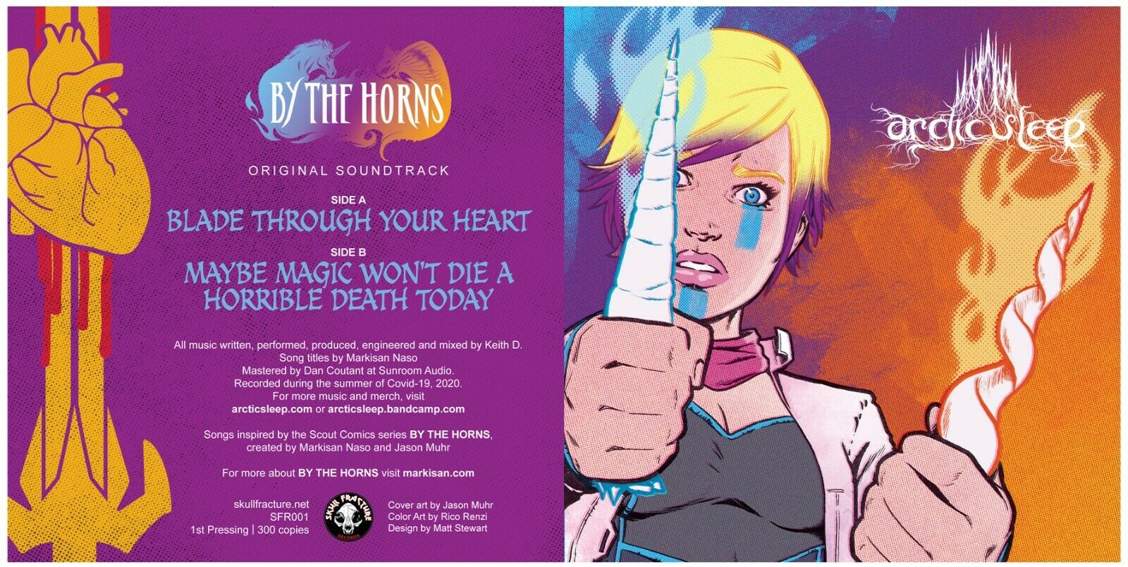 BRAND NEW. Exclusive band edition on transparent boris purple vinyl with a print copy of the By the Horns #1 comic book. Limited to 100 copies. You are buying this directly from the band, not some overpriced ripoff seller. That's right, straight from Arctic Sleep to you. Thanks for your support! You get: - Issue #1 of the critically-acclaimed Scout Comics series "By The Horns" special variant cover. Comic will be sealed in a poly bag with backing board. - "By The Horns Original Soundtrack" by ARCTIC SLEEP, on 7" purple vinyl. Features the songs inspired by the comic series; "Blade Through Your Heart" and "Maybe Magic Won't Die A Horrible Death Today." - I'll also message you a digital download code for the album which can be redeemed on Bandcamp.com. The little stand/holder thingy in the photo is for display purposes only and is not included. Any questions, feel free to ask. If there's any problems with your order, please let me know right away so I can make it right.